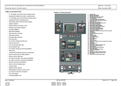 LIST OF CONTENTS: ISSUE AND UPDATES INTRODUCTION Part 1: Ship Characteristics 1.1 Principal Data 1.1.1 Principal Particulars 1.1.2 Tanks and Capacity Plan Illustrations 1.1a General Arrangement 1.1b General Arrangement - Upper Deck Accommodation 1.1c General Arrangement - 'A' Deck 1.1d General Arrangement - 'B' Deck 1.1e General Arrangement - 'C' Deck 1.1f General Arrangement - 'D' Deck 1.1g General Arrangement - Navigation Deck 1.1.2a Tank Capacity Tables 1.1.2b Tank Capacity Tables 1.2 Ship Handling 1.2.1 Turning Circles 1.2.2 Manoeuvring 1.2.3 Visibility Over the Bow Illustrations 1.2.1a Turning Circles 1.2.2a Inertia Stopping Tests 1.2.2b Crash Stop Astern Tests 1.3 Performance Data 1.3.1 Fuel Oil Consumption/Power Data 1.3.2 Revolutions/Speed/Power Data 1.3.3 Limitations on Operating Machinery 1.3.4 Squat Values Illustrations 1.2.3a Visibility Diagrams 1.3.2a Speed/Power Curves 1.3.4a Squat Curve Part 2: Bridge Layout and Equipment 2.1 Bridge Layout and Equipment 2.1.1 Bridge Consoles and Equipment Illustrations 2.1.1a Bridge Layout 2.1.1b Bridge Main Console 2.1.1c Manoeuvring Console 2.1.1d Bridge Radio Table Layout 2.1.1e Lighting, Alarm and Detection Control Panel 2.1.1f Bridge Chart Table Layout 2.1.1g Wheelhouse Overhead Console 2.2 Integrated Navigation System 2.2.1 Electronic Chart Display and Information System (ECDIS) 2.2.2 Voyage Planning 2.2.3 Use of the Voyage Management System on Passage 2.2.4 Safety Features 2.2.5 Radar Interface 2.2.6 Radar Operation Illustrations 2.2a Chart Display 2.2b VMS Conning Screen Display 2.2c Keyboard Display 2.2.1a ECDIS Equipment 2.2.2a Voyage Plan Editor Display 2.2.6a Radar Equipment 2.2.6b Radar Control Panel and Screen Display 2.3 Autopilot and Electric Steering System 2.3.1 Steering Procedures 2.3.2 Autopilot 2.3.3 Gyrocompass 2.3.4 Magnetic Compass Illustrations 2.3.1a Steering Stand and Peripherals 2.3.1b Manoeuvring Console 2.3.2a Autopilot Display and Control Panel 2.3.3a Gyrocompass System 2.3.3b Gyrocompass Monitor 2.3.3c Gyrocompass Unit Menu 2.4 Main Engine Manoeuvring Control 2.4.1 Main Engine Controls 2.4.2 Main Engine - Procedures Illustrations 2.4.1a Main Engine System 2.4.1b Main Engine Control Panel on the Bridge 2.4.1c Bridge Telegraph Unit 2.5 Discrete Equipment 2.5.1 Speed Log 2.5.2 DGPS Navigator 2.5.3 Echo Sounder 2.5.4 Meteorological System 2.5.5 Weather Facsimile Machine 2.5.6 Voyage Data Recorder 2.5.7 Automatic Identification System 2.5.8 Hull Stress Monitoring 2.5.9 Fog Bell and Gong System 2.5.10 Whistle System 2.5.11 Sound Reception System Illustrations 2.5.1a Speed Log System 2.5.2a DGPS System 2.5.2b DGPS Control Panel 2.5.3a Echo Sounder System 2.5.3b Echo Sounder Equipment 2.5.4a Anemometer System 2.5.5a Weather Facsimile Receiver 2.5.6a Voyage Data Recorder System Overview 2.5.6b Voyage Data Recorder Remote Display Unit 2.5.7a Automatic Identification System 2.5.7b Automatic Identification System Screen 2.5.7c Automatic Identification System Menu Tree 2.5.8a Hull Stress Stain Gauge Locations and Mimic Display 2.5.9a Fog Bell and Gong System 2.5.10a Whistle System 2.5.10b Whistle Control Panel 2.5.11a Sound Reception Control Panel 2.6 GMDSS and Communications Systems 2.6.1 GMDSS Overview 2.6.2 Inmarsat-B System 2.6.3 Inmarsat-C System 2.6.4 Inmarsat Mini M System 2.6.5 VHF Transceiver Systems 2.6.6 MF/HF Transceiver Systems 2.6.7 EPIRB and SARTS 2.6.8 NAVTEX Receiver 2.6.9 Emergency Radios Illustrations 2.6.1a GMDSS 2.6.1b GMDSS Distress Reactions 2.6.1c GMDSS Equipment 2.6.2a Inmarsat-B System 2.6.3a Inmarsat-C Station 2.6.5a VHF DSC Systems 2.6.6a MF/HF Control Unit System 2.6.7a SART 2.6.8a NAVTEX Receiver 2.6.9a GMDSS Emergency Hand Held VHF Radio 2.7 Internal Communications 2.7.1 Common Battery Powered Telephone System 2.7.2 Automatic Telephone System 2.7.3 Public Address System 2.8 Lighting Systems 2.8.1 Navigation Lights 2.8.2 Deck Lighting Illustrations 2.8.1a Navigation and Signal Lights 2.8.1b Navigation and Signal Light Control Panels 2.8.2a Deck Lighting Plan 2.8.2b Deck Lighting Control Panel Part 3: Deck Equipment 3.1 Mooring 3.1.1 Mooring Arrangement 3.1.2 Anchoring Arrangement 3.1.3 Emergency Towing Arrangements 3.1.4 Anchoring and Mooring Procedures Illustrations 3.1.1a Mooring Arrangement 3.1.1b Deck Mooring Hydraulic System 3.1.1c Deck Hydraulic Power Pack Control Panel 3.1.3a Aft Emergency Towing Arrangement 3.1.4a Ship to Ship Mooring Arrangement 3.2 Lifting and Access Equipment 3.2.1 Hose Handling Crane 3.2.2 Provision and Stores Cranes 3.2.3 Accommodation and Pilot Ladder Reels Illustrations 3.2.1a Hose Handling Cranes 3.2.2a Provisions and Engine Room Cranes 3.2.2b Provision/Stores Crane Control Units 3.2.2c Provision Cranes Slewing Sectors and Jib Rest Positions 3.2.3a Accommodation Ladder 3.3 Lifesaving Equipment 3.3.1 Lifeboats and Davits 3.3.2 Rescue Boat and Davit 3.3.3 Liferafts, Davit Launched and Free Fall 3.3.4 Lifeboat Survival Guide 3.3.5 Fire Fighting Equipment Plans 3.3.6 Lifesaving Equipment Plans Illustrations 3.3.1a Lifeboat 3.3.1b Lifeboat Recovery Davit and Stowage 3.3.1c Lifeboat Launch and Recovery Procedure 3.3.2a Rescue Boat and Davit 3.3.3a Righting a Capsized Liferaft 3.3.3b Liferaft Release 3.3.3c Liferaft Davit Launch Procedure 3.3.5a Safety and Fire Control Symbols (1) 3.3.5b Safety and Fire Control Symbols (2) 3.3.5c Fire Fighting Equipment and Dampers - Navigation and D Deck 3.3.5d Fire Fighting Equipment and Dampers - B and C Deck 3.3.5e Fire Fighting Equipment and Dampers - A Deck 3.3.5f Fire Fighting Equipment and Dampers - Upper Deck Accommodation 3.3.5g Fire Fighting Equipment and Dampers - Main Deck 3.3.5h Fire Fighting Equipment and Dampers - Engine Room 2nd Deck and Bosun’s Store 3.3.5i Fire Fighting Equipment and Dampers - Engine Room 3rd Deck 3.3.5j Fire Fighting Equipment and Dampers - Engine Room 4th Deck and Floor 3.3.6a Lifesaving Equipment and Escape Routes - Navigation and D Deck 3.3.6b Lifesaving Equipment and Escape Routes - B and C