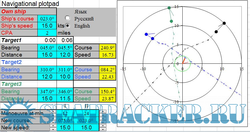 Описание: Программа для расчета параметров движения трех целей на Навигационном Планшете.