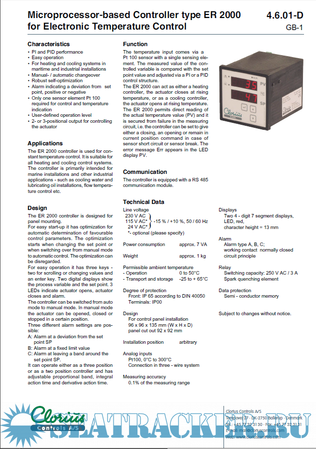 Microprocessor-based temperature controller type: ER 2000 with RS485