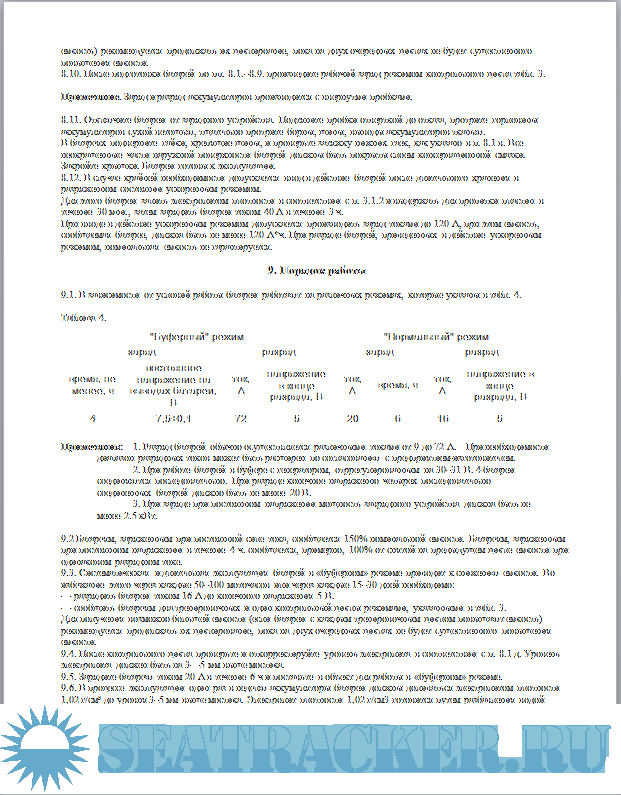 9. Порядок работы