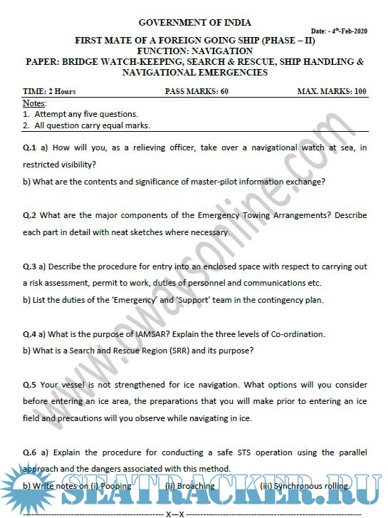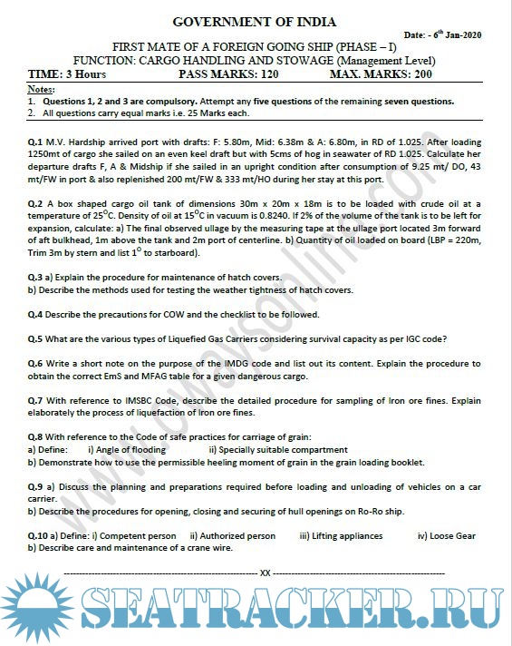 Past Question Paper sets for MMD India Chief Mates F.G. Phase I & II Examinations