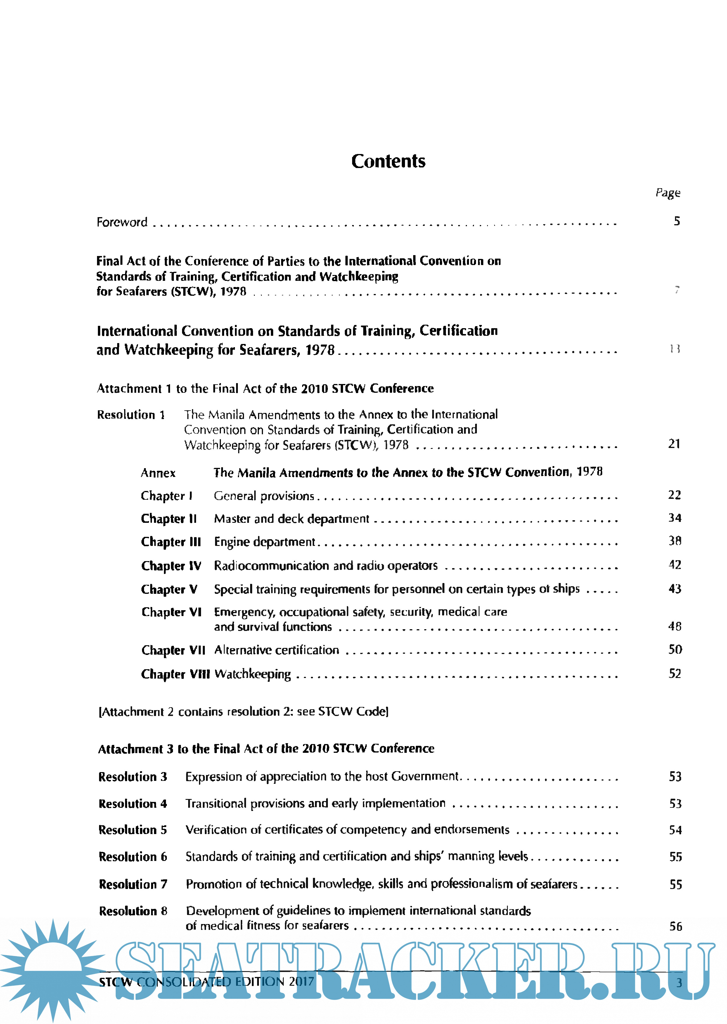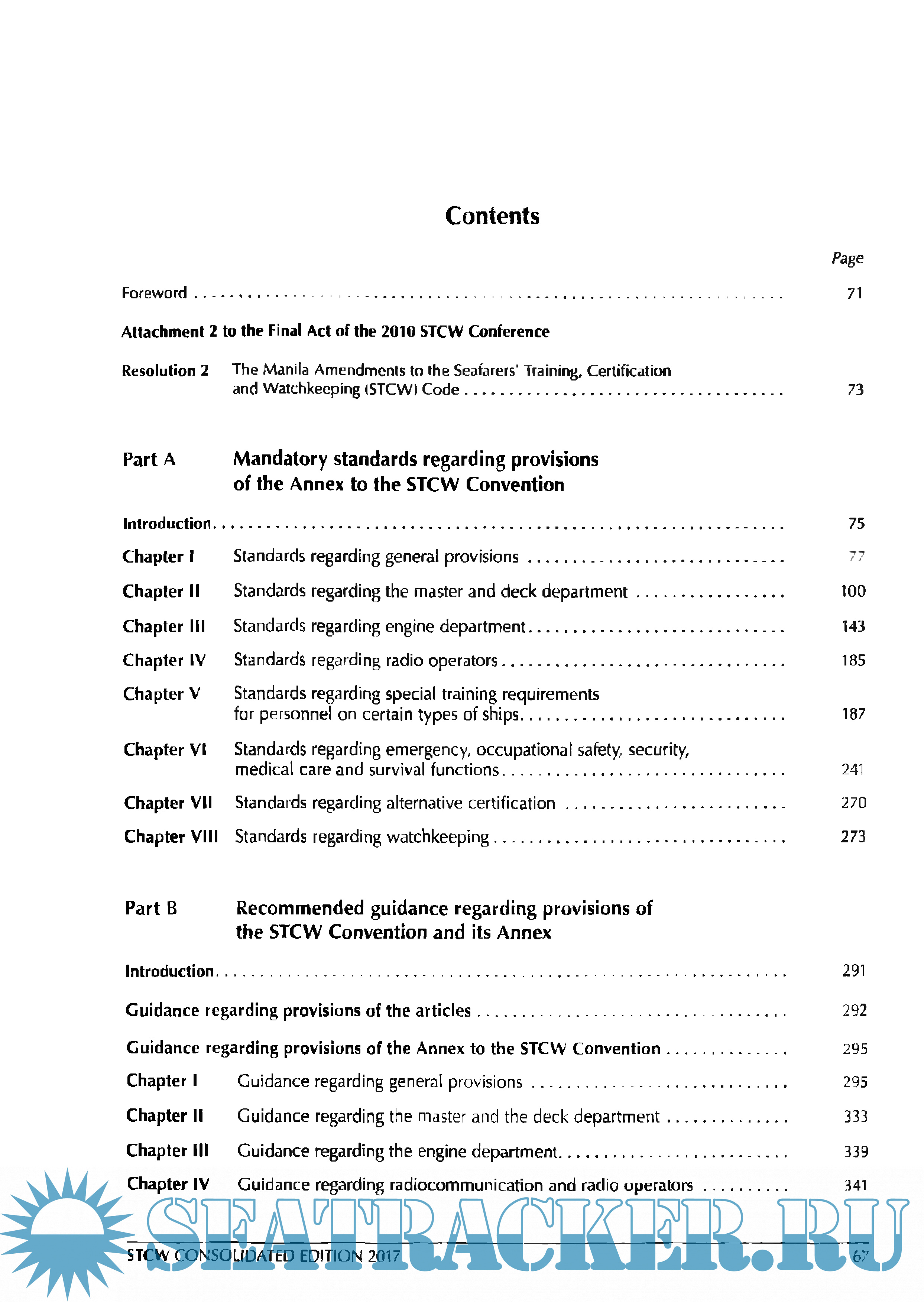 Contents Foreword ............................ V STCW Convention International Convention on Standards of Training, Certification and Watchkeeping for Seafarers, 1978, as amended ............................ 1 STCW Code Seafarers' Training, Certification and Watchkeeping Code, as amended ............ 69 STCW CONSOLIDATED