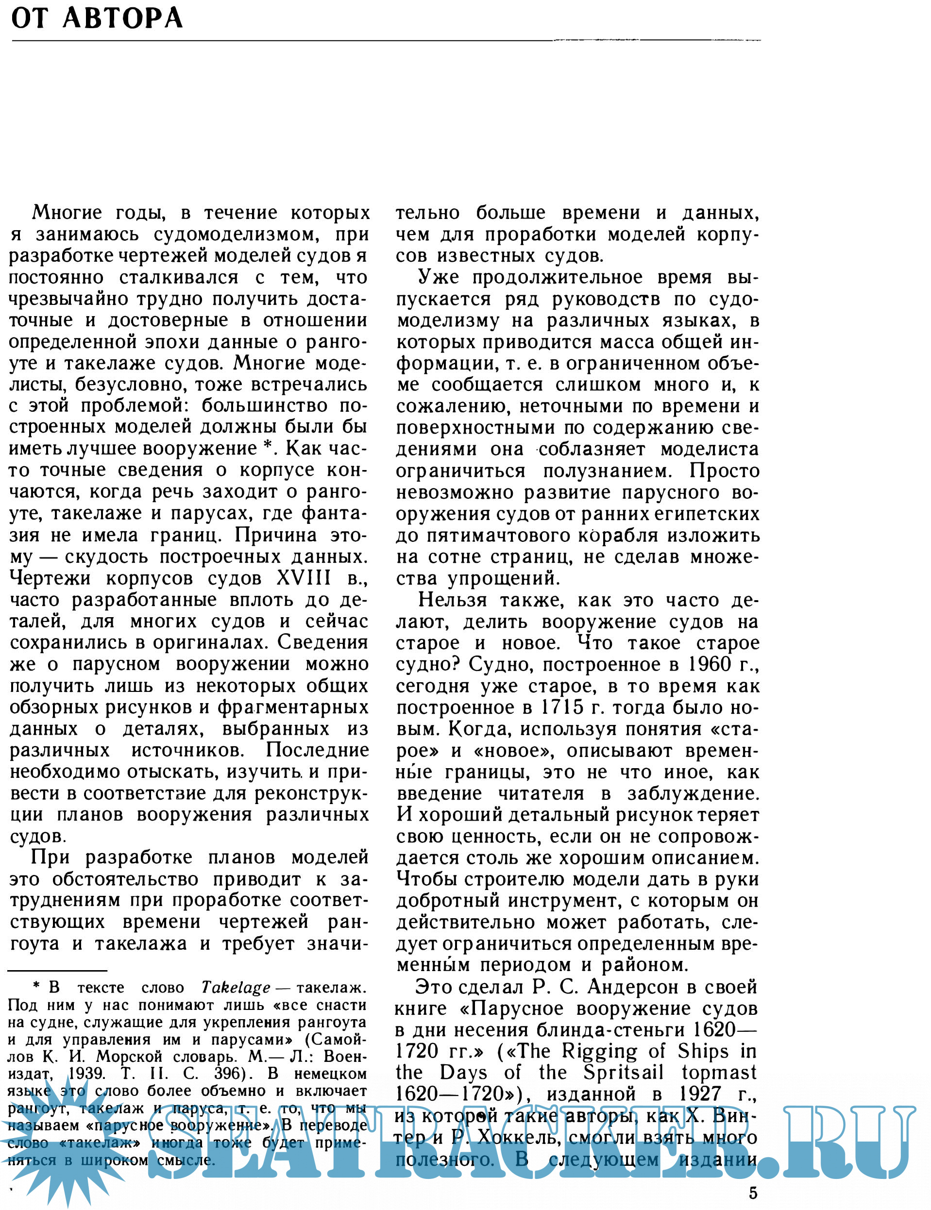 той или иной эпохе. Задача данной книги - дать моделисту специальные знания по парусному вооружению судна. Приведенные здесь данные выбраны из большого числа работ как описываемой эпохи, так и современных.