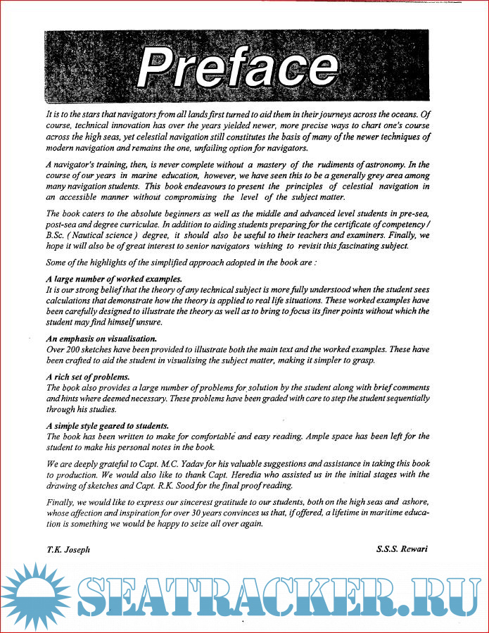Year: 2006 Language: english Author: Capt. T.K. Joseph & Capt. S.S. Rewari Genre: Textbook Publisher: Applied Research International Edition: 2nd Edition ISBN: 9788110003890 Format: PDF Quality: Scanned pages Pages count: 303 Description: The book caters to the absolute beginners as well as the middle and advanced level students in pre-sea, post-sea and degree curriculae. In addition to aiding students preparing for the Certificate of Competency (CoC) / B.Sc (Nautical Science) degree, it should also be useful to their teachers and examinars. Finally we also hope it would be of great interest to senior navigators wishing to revisit this fascinating subject. Some of the highlights of the smiplified apporach adopted in the book are: 1) A large number of worked examples. 2) An emphasis on visualization. 3) A rich set of problems. 4) A simple style geared to students.