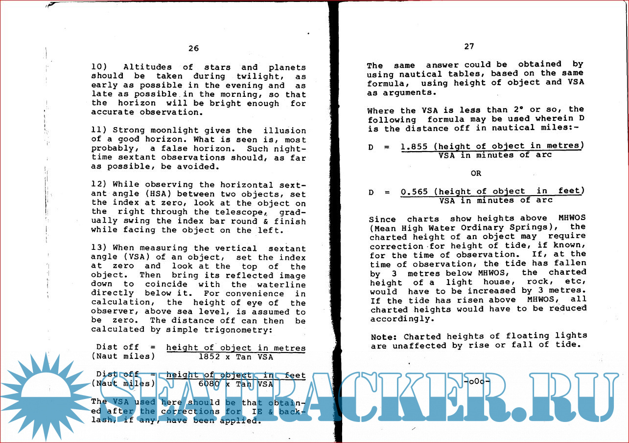 4. Hints on use of Sextant