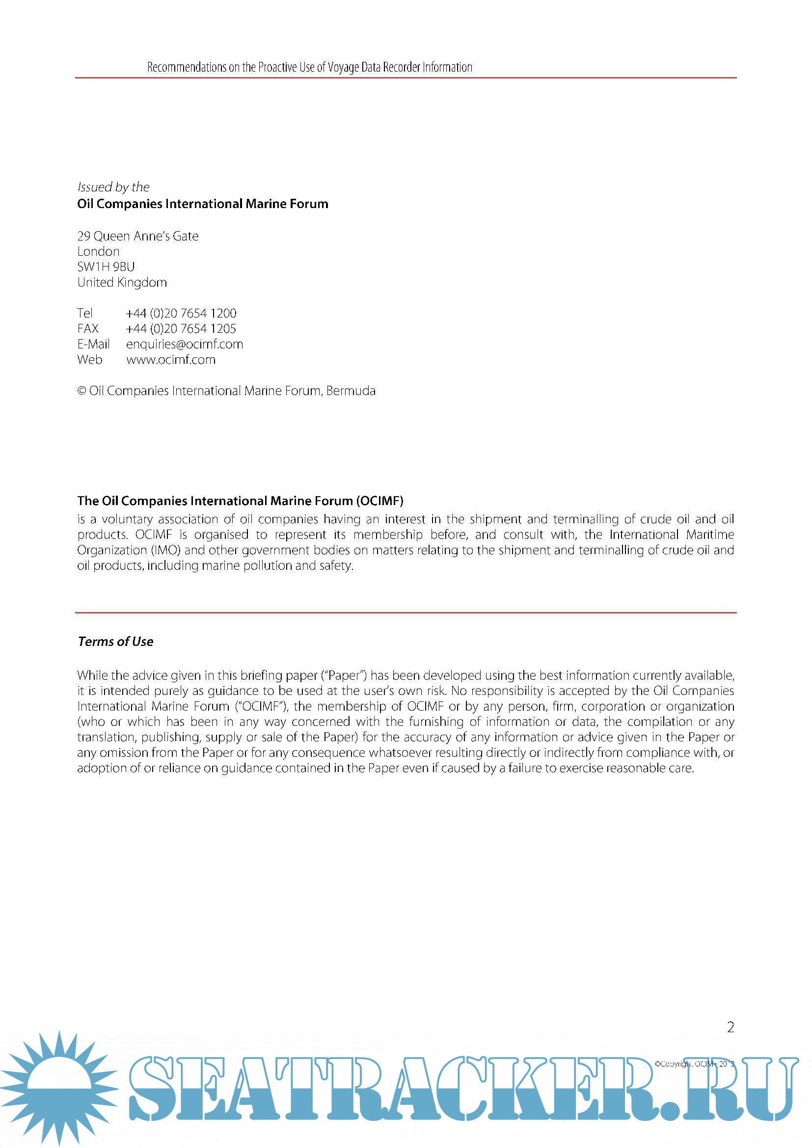 Recommendations on the Proactive Use of Voyage Data Recorder Information - OCIMF [2020, PDF]