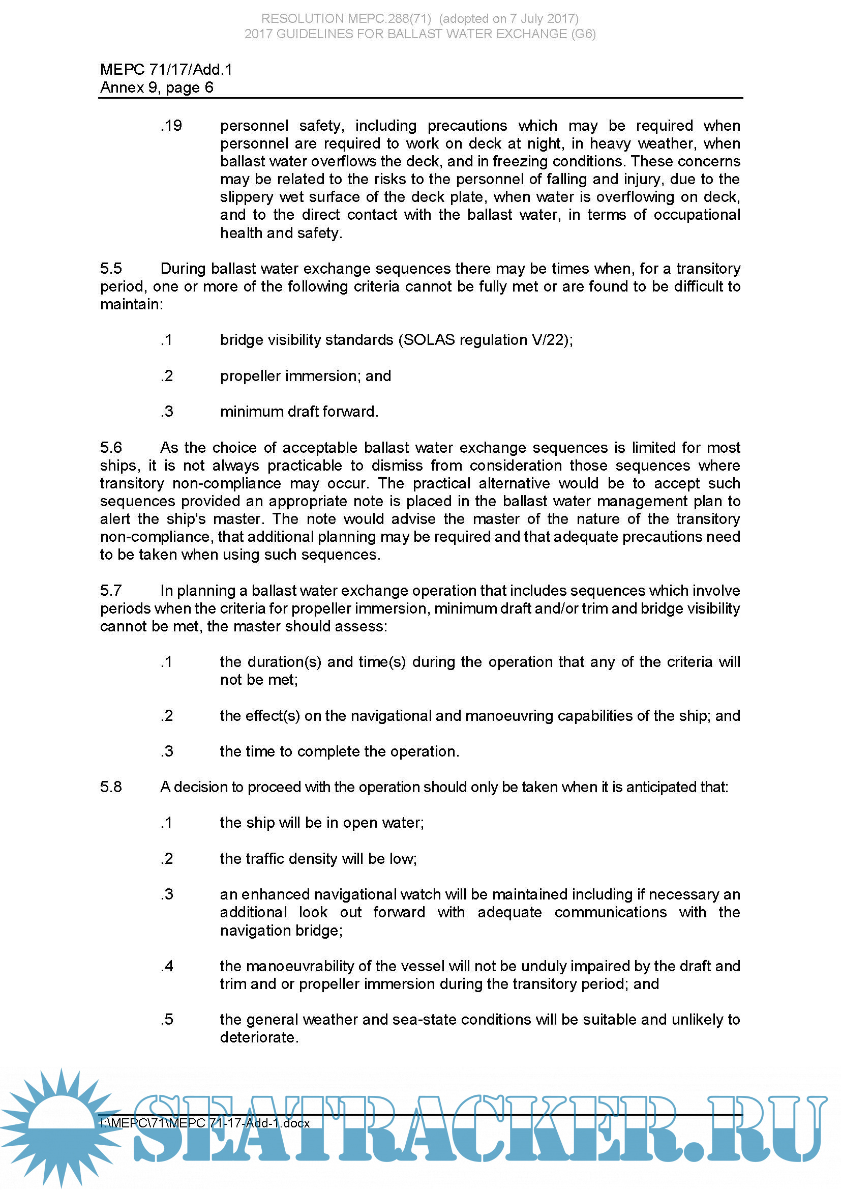 Guidelines For Ballast Water Exchange (G6)