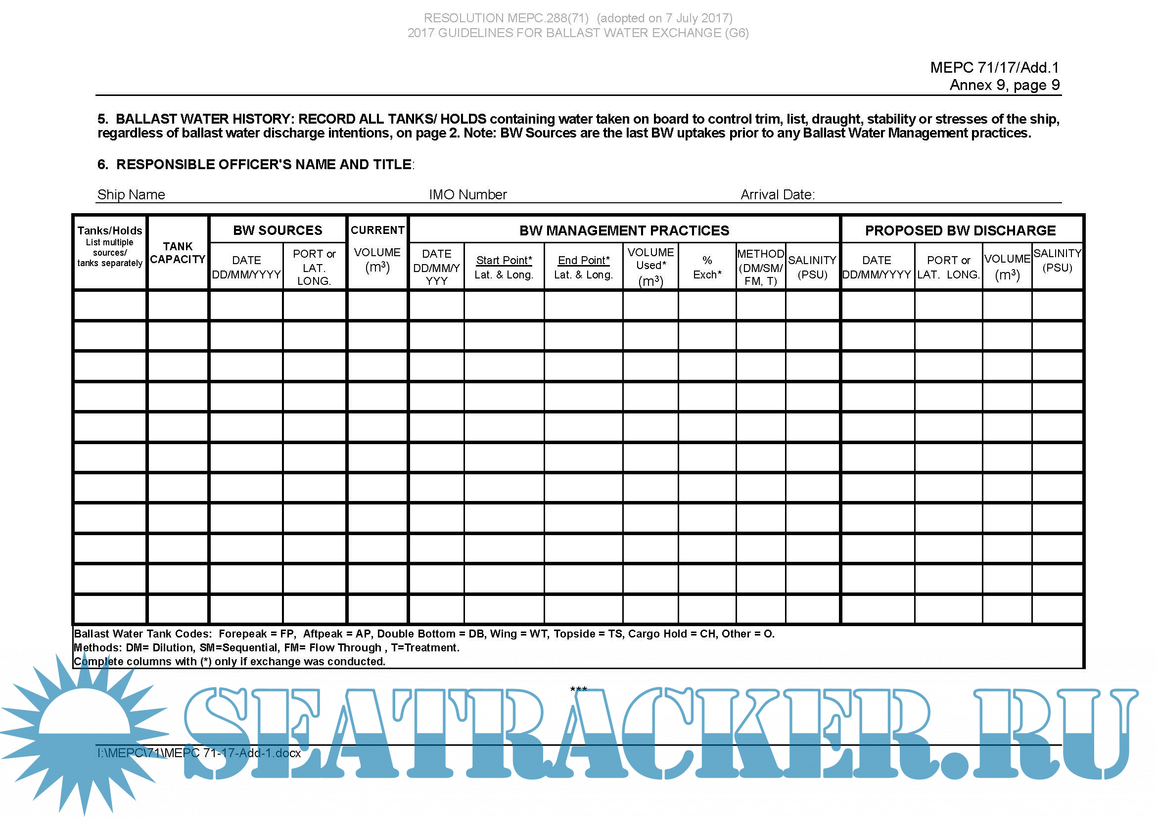 Ballast Water Management Plan DNV template - DNV [2017, PDF]
