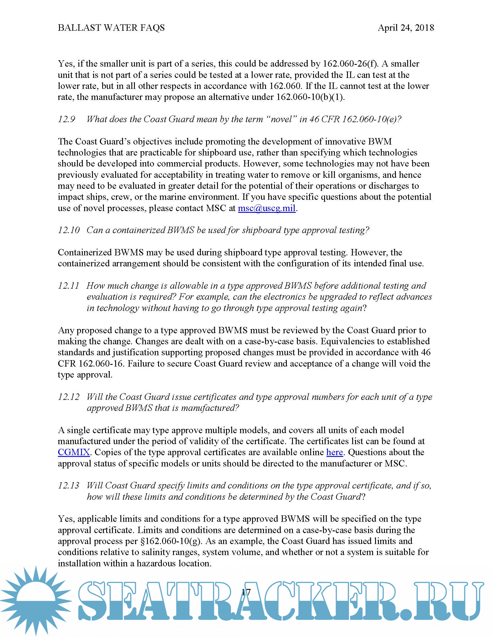 Ballast Water Frequently Asked Questions, Revised April24,2018