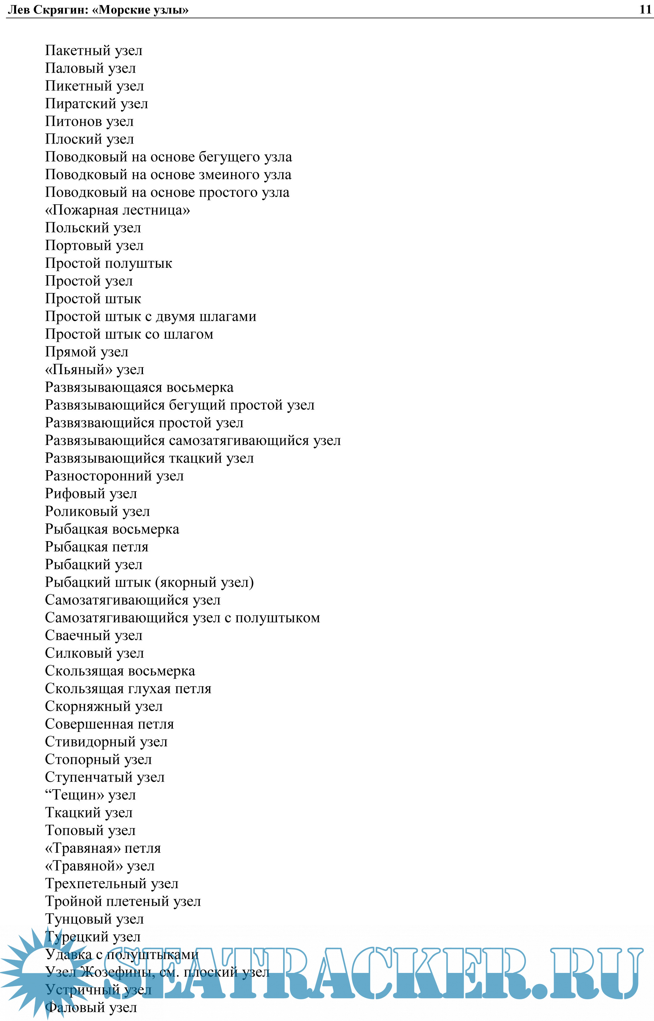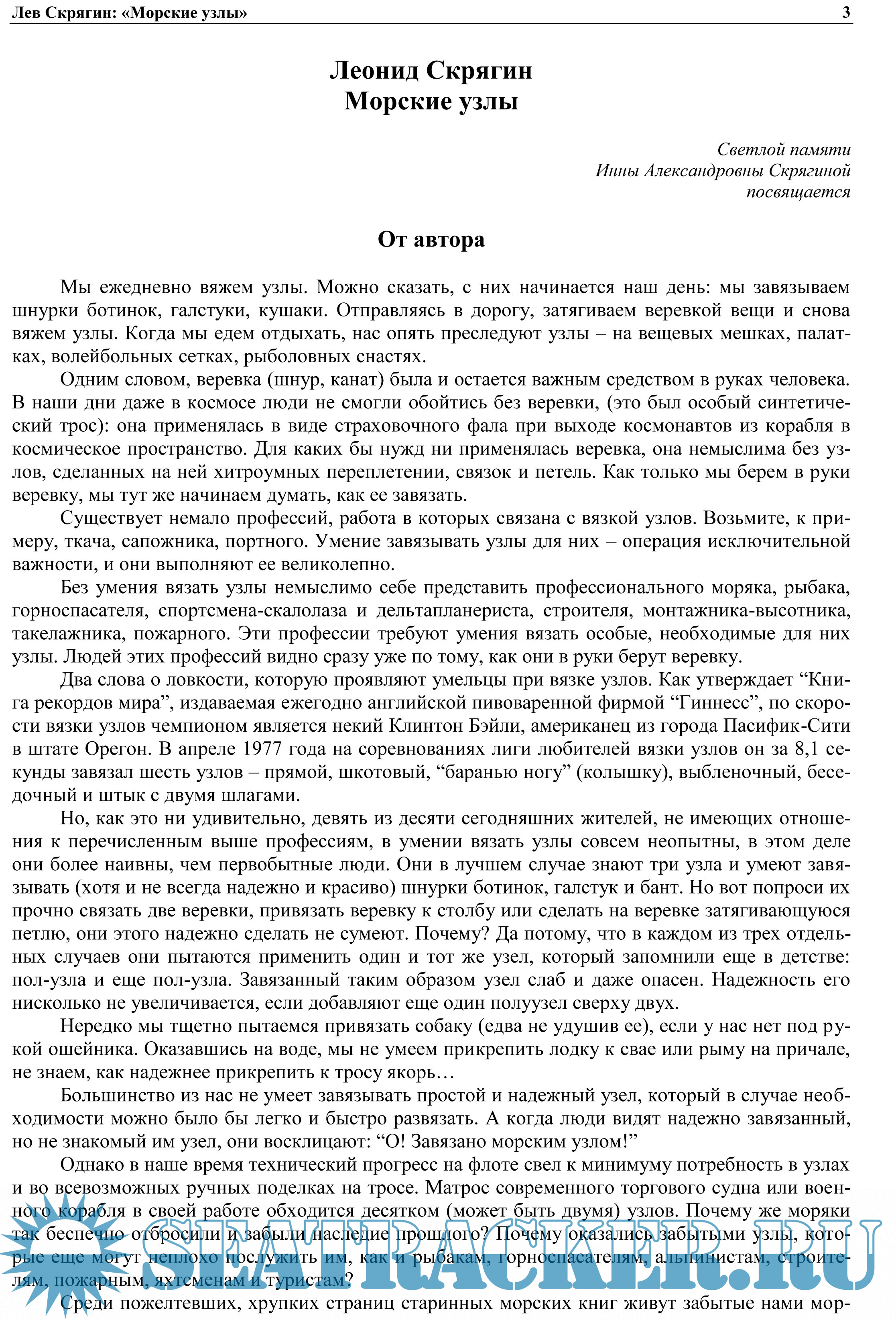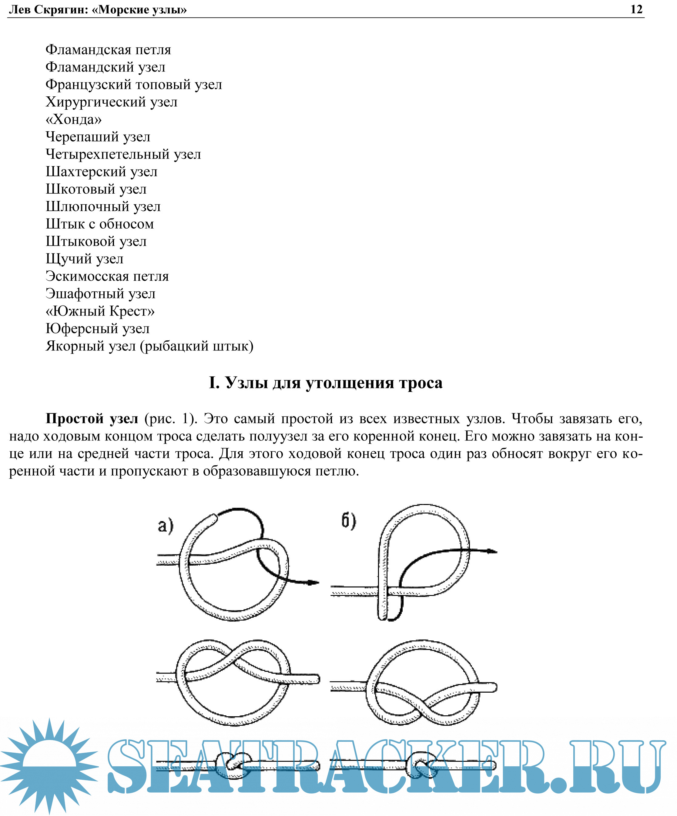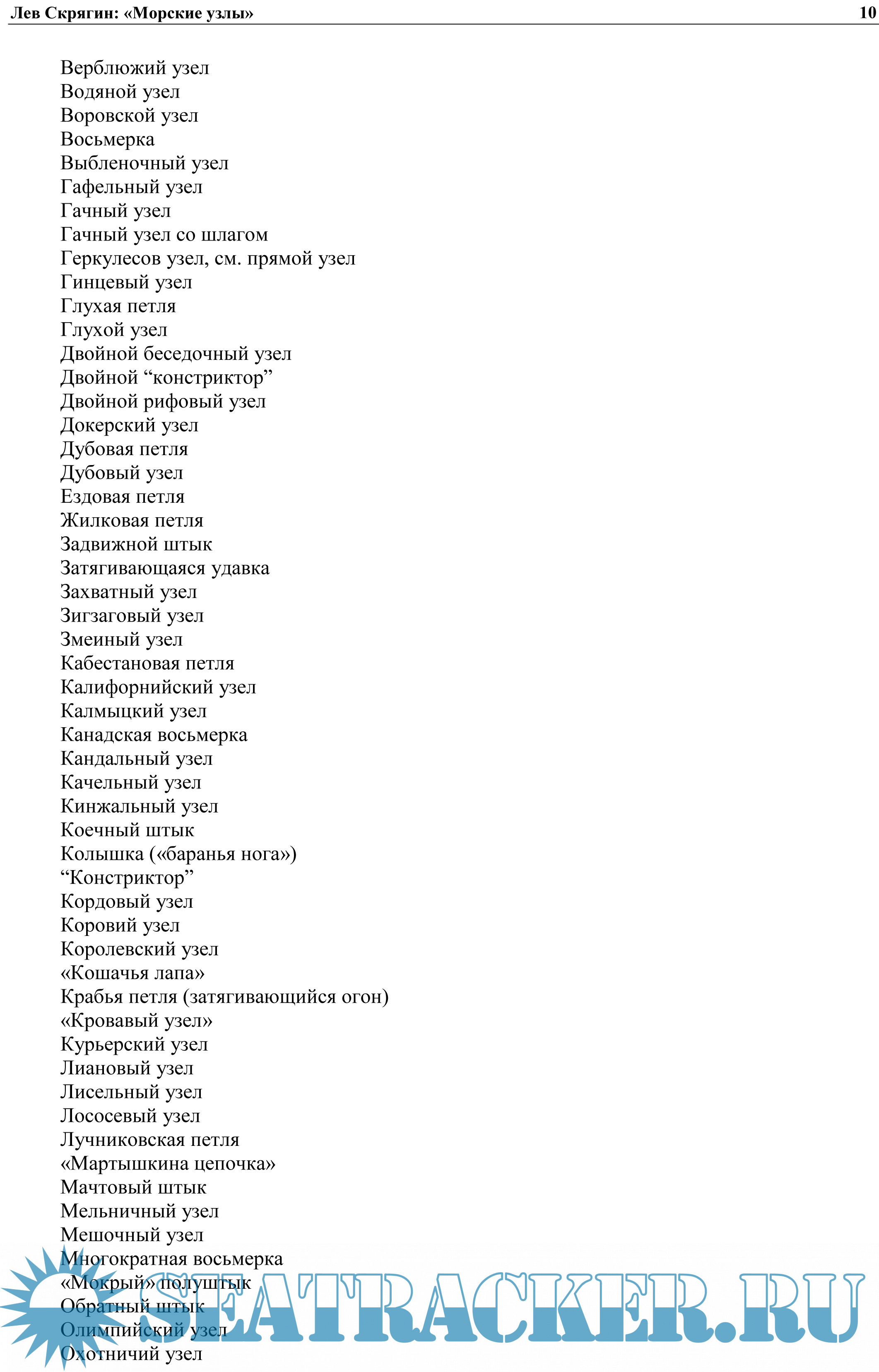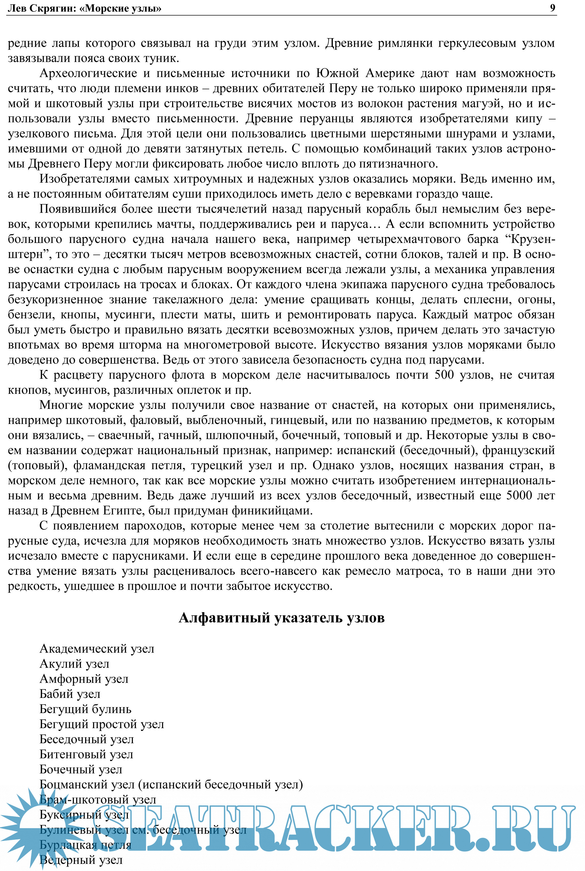 Предназначена для учащихся мореходных школ, осваивающих такелажное дело. Может служить практическим пособием и справочником по вязке узлов для моряков, рыбаков, яхтсменов, альпинистов, строителей, рыболовов-любителей, туристов.
