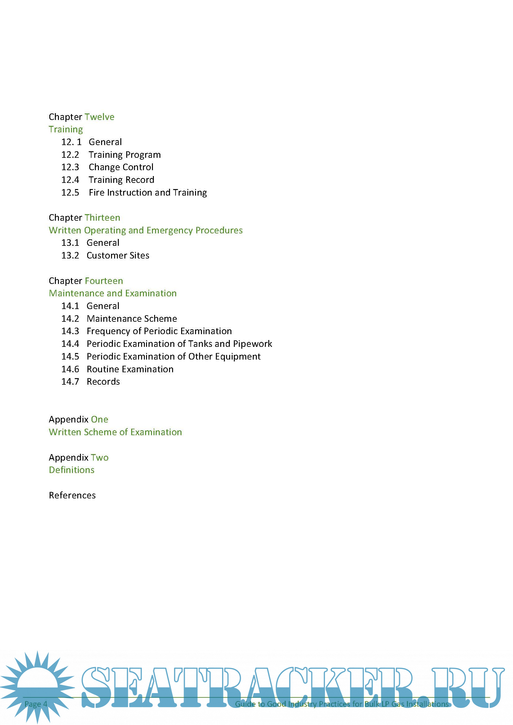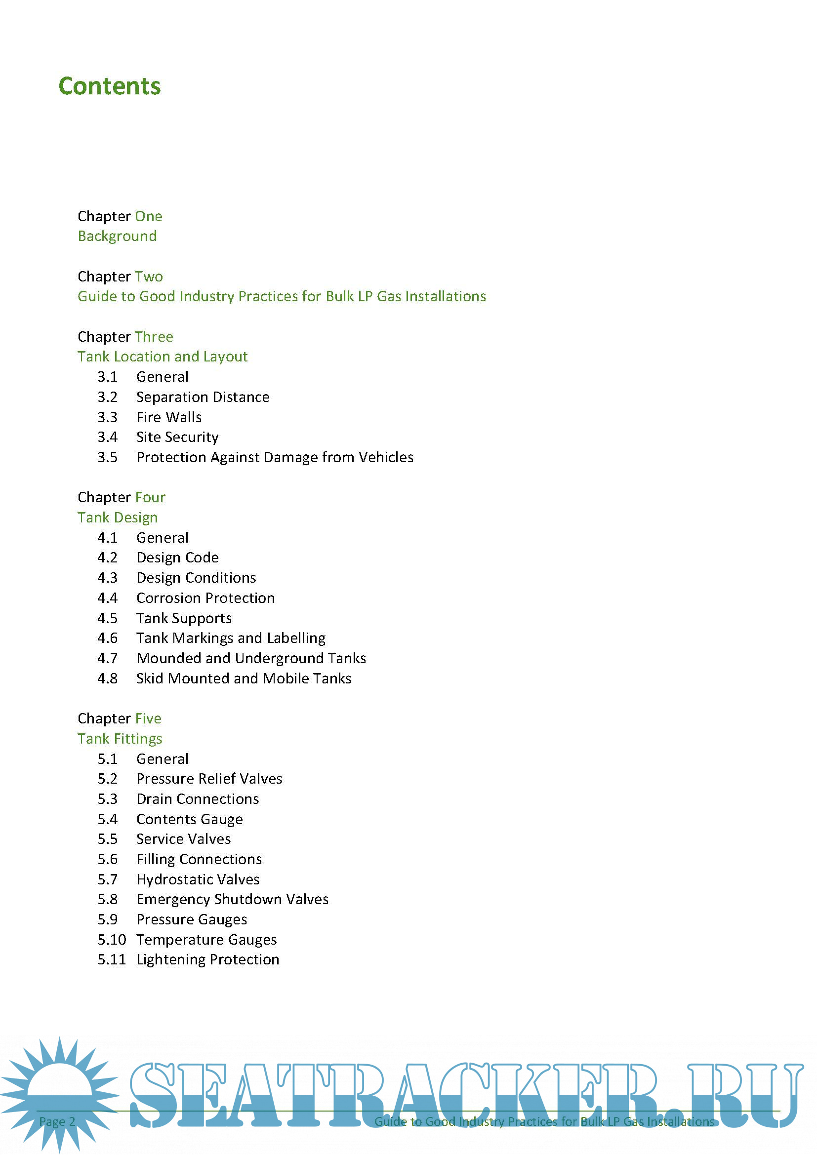 Year: 2013 Language: english Author: World LP Gas Association Genre: Guide Format: PDF Quality: eBook Pages count: 73 Description: LP Gas is commonly stored in pressure vessels in various facilities i.e. terminals and depots, cylinder filling plants, Autogas fuelling stations and customer sites. The capacities of these facilities can range from 100,000 MT (metric tonnes) for large import terminals to as small as 0.5 MT for a domestic installation. Whatever the size of an LP Gas installation, any safety incident whether due to equipment failure or external threats has the potential to cause injury and/or property damage not only to people working within these facilities but also the population of the surrounding communities. It is therefore important to all stakeholders in the industry to manage and reduce the risks associated with operating an LP Gas facility to As Low As Reasonably Practicable (ALARP). This can be achieved with suitable design and engineering standards, safe operations, and comprehensive and rigorous maintenance programmes combined with effective staff training programmes. This guide should always be used in conjunction with local standards and regulations. If the requirements of the local standards or regulations are less than the guide, the latter should be adopted to ensure a higher level of safety for the LP Gas facility. The recommendation in this guide applies to pressurised LP Gas facilities covering terminals and depot, cylinder filling plants, Autogas fuelling sites and industrial, commercial, agricultural and domestic installations permanently installed and refilled onsite. This Guide does not cover refrigerated terminals, caverns, salt domes and mobile cylinder installations.