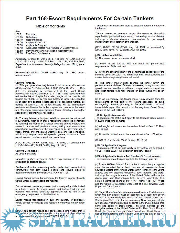 Additional info: A compilation of applicable CFR 33 & 46 regulations pertaining to Foreign Vessels Operating in the Navigable waters of the United States.