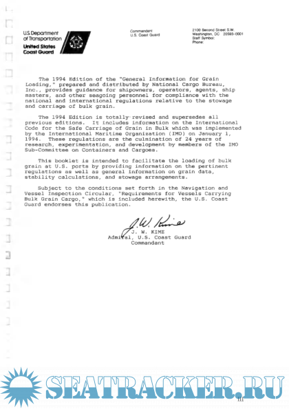 Description: US National Cargo Bureau Grain Loading booklet, containing US Coast Guard regulations for carriage of grain in bulk.