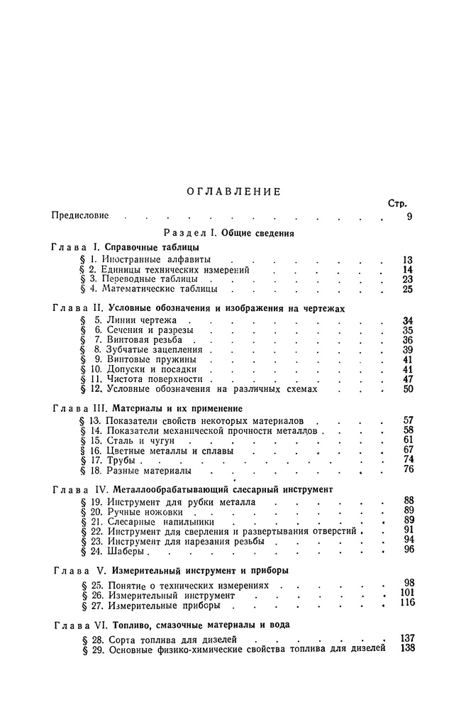 • В Справочнике содержатся систематизированные данные по материалам (металлам, топливу, смазочным маслам и пр.), сведения по слесарному инструменту и измерительным приборам, характеристики основных типов двигателей внутреннего сгорания, применяемых на судах речного флота, рассмотрены основные узлы и вспомогательные устройства, системы управления, редукторы и реверс-редукторы, системы автоматики двигателей, вопросы режимов работы и ухода за двигателями, приведены сведения об основных вспомогательных механизмах теплоходов и пр.