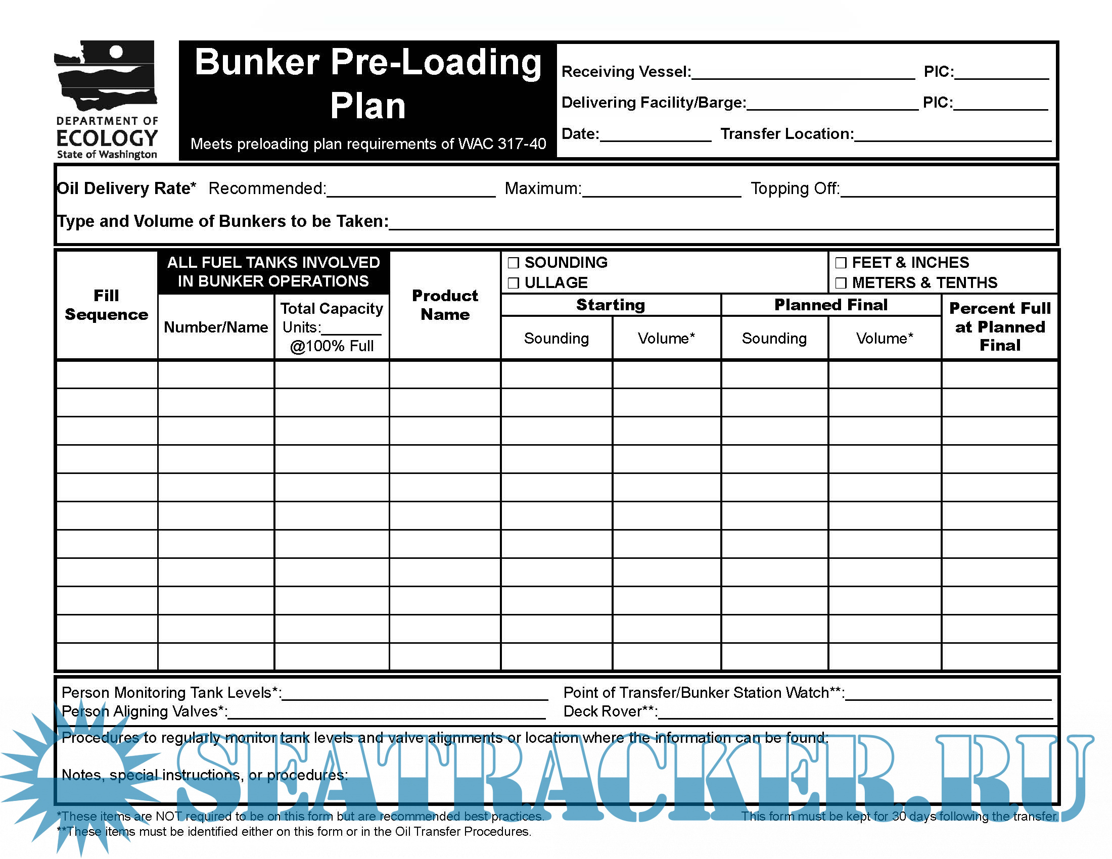 The Washington State Department of Ecology regulates oil transfers over Washington waters to help prevent oil spills. The bunkering best practices checklists in this guide comply with the Washington State bunkering rule (Chapter 317-40