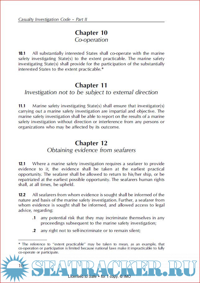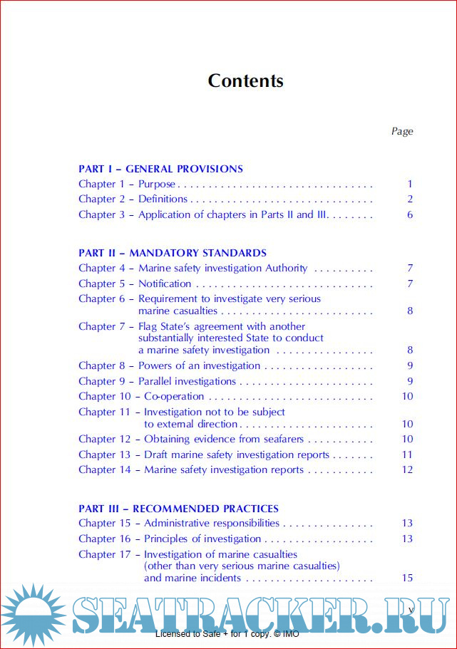 Year: 2008 Language: english Author: IMO Genre: Convention (rules) Publisher: IMO Edition: 1st ISBN: 9789280114980 Format: PDF Quality: eBook Pages count: 32 Description: The MSC adopted a new Code of the International Standards and Recommended Practices for a Safety Investigation into a Marine Casualty or Marine Incident (Casualty Investigation Code) in May 2008. Relevant amendments to SOLAS Chapter XI-1 were also adopted, to make parts I and II of the Code mandatory from 1 January 2010. Part III of the Code contains related guidance and explanatory material. Additional info: Electronic Edition