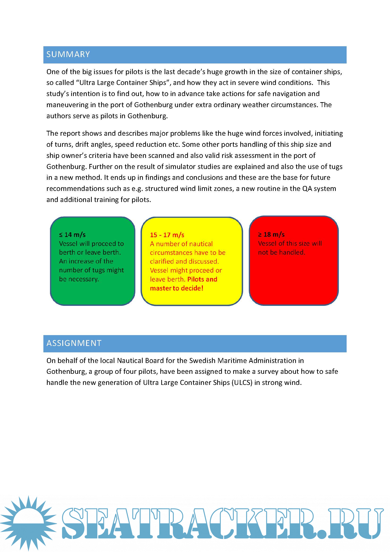 Safe handling of Ultra Large Container Ships in strong wind, version 2.0