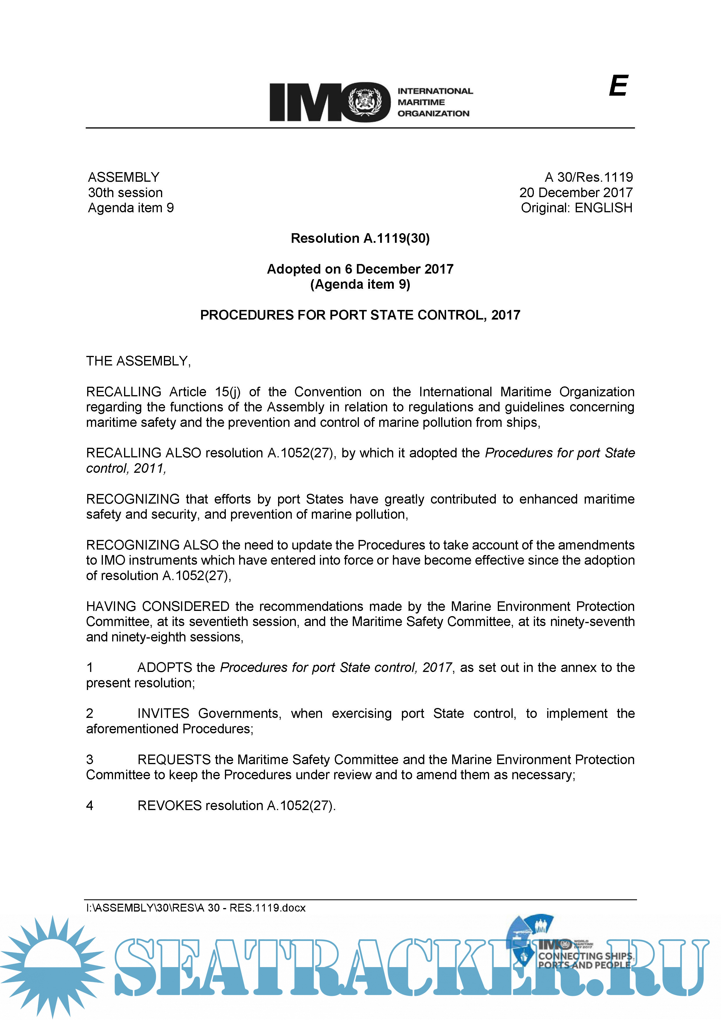 Procedures for Port State Control, 2017 (IMO resolution A.1119(30)