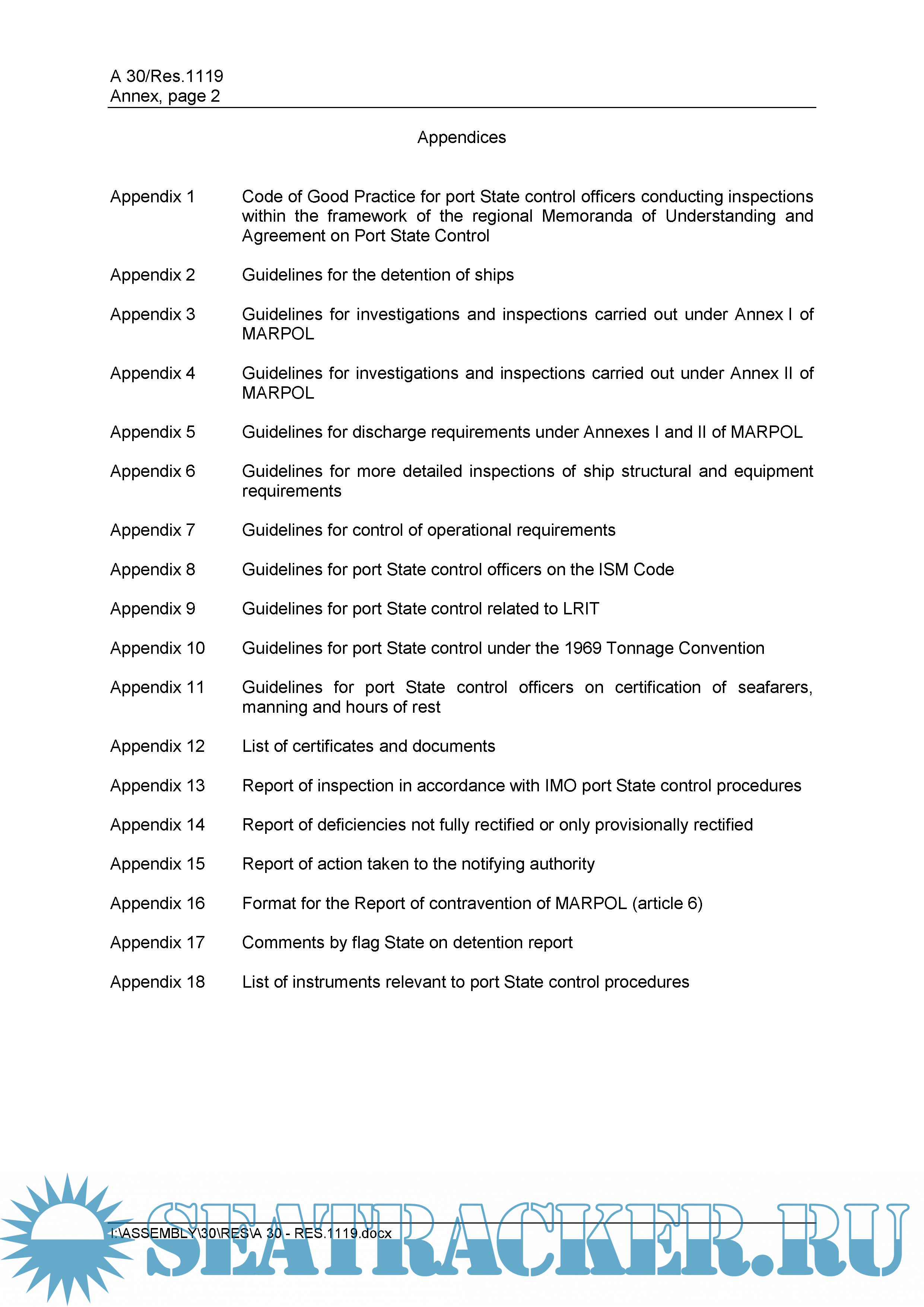 Appendix 18 List of instruments relevant to port State control procedures