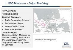Year: 2017 Language: english Author: CIL Genre: Presentation Format: PDF Quality: eBook Pages count: 63 Description: I. Straits of Malacca and Singapore (SOMS) • Historical Background • Legal Status & Legal Regime II. IMO Measures • Trilateral Cooperation • Ships’ Routeing and Ship Reporting III. Cooperative Mechanism • Establishment • Components IV. Response to Threats to Maritime Security • MSP/IFC/ReCAAP