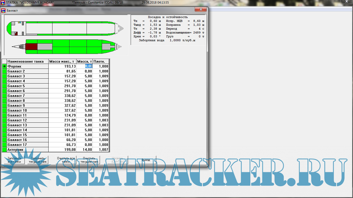 Описание: Программа предназначена для составления планов загрузки судов, контроля остойчивости, аварийной остойчивости, продольной прочности, а также для ежедневного учёта изменения судовых запасов. Алгоритм программы позволяет вычислять гидростатические элементы и параметры остойчивости для любого заданного судна.