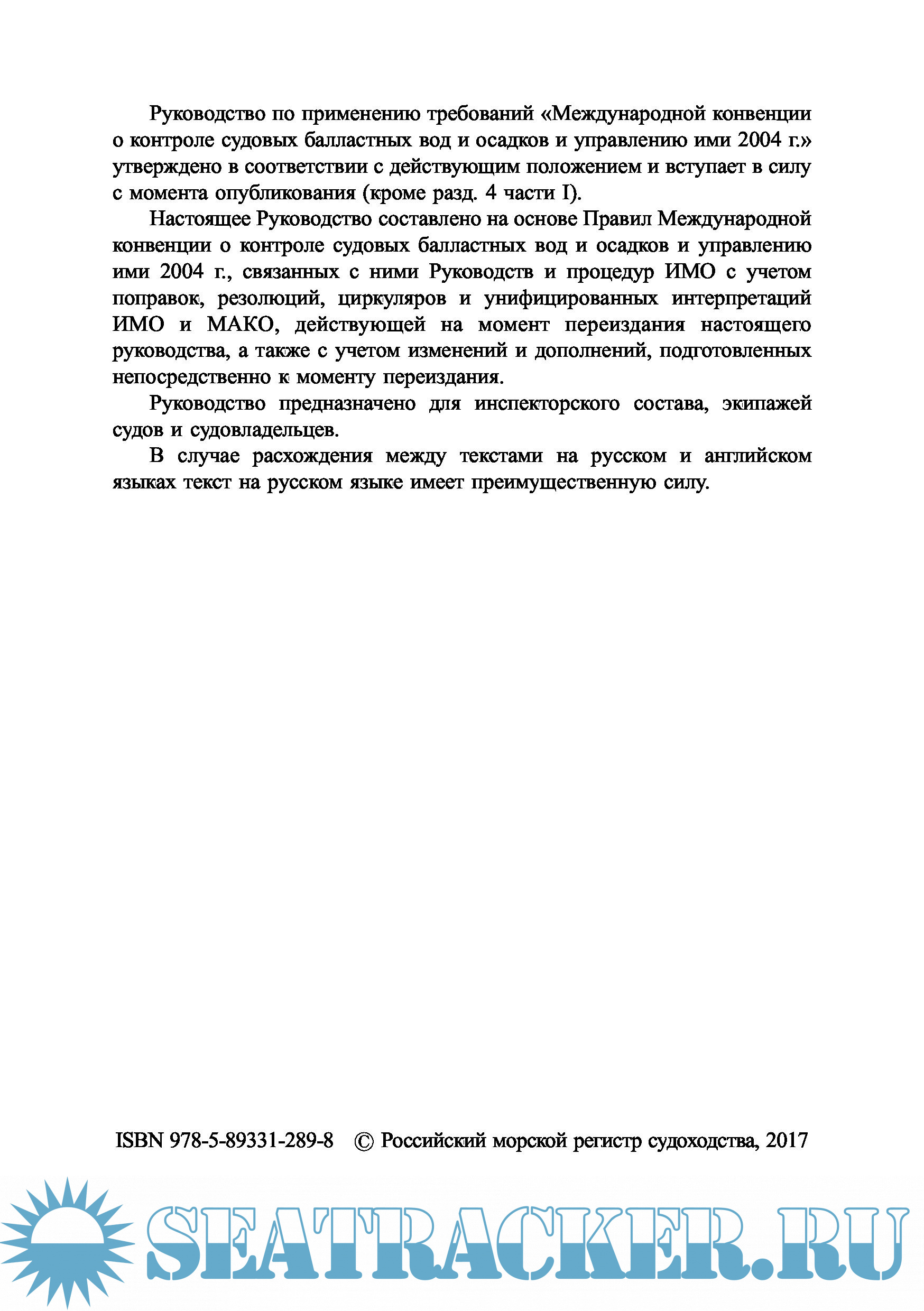Описание: Руководство по применению требований «Международной конвенции о контроле судовых балластных вод и осадков и управлению ими 2004 г.» утверждено в соответствии с действующим положением и вступает в силу с момента опубликования (кроме разд. 4 части I).
