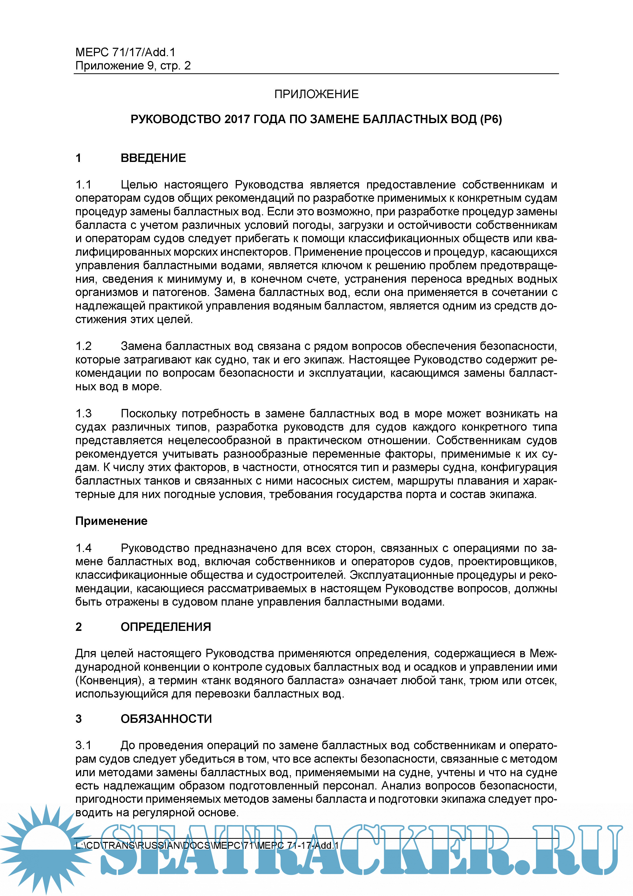 РУКОВОДСТВО 2017 ГОДА ПО ЗАМЕНЕ БАЛЛАСТНЫХ ВОД (Р6)