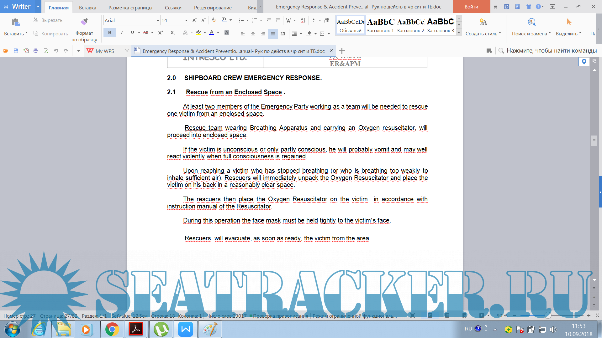 Description: Компанией INTRESCO под руководством капитана был написано краткое руководство по чрезвычайным ситуациях. Кратко и доступно на двух языках.