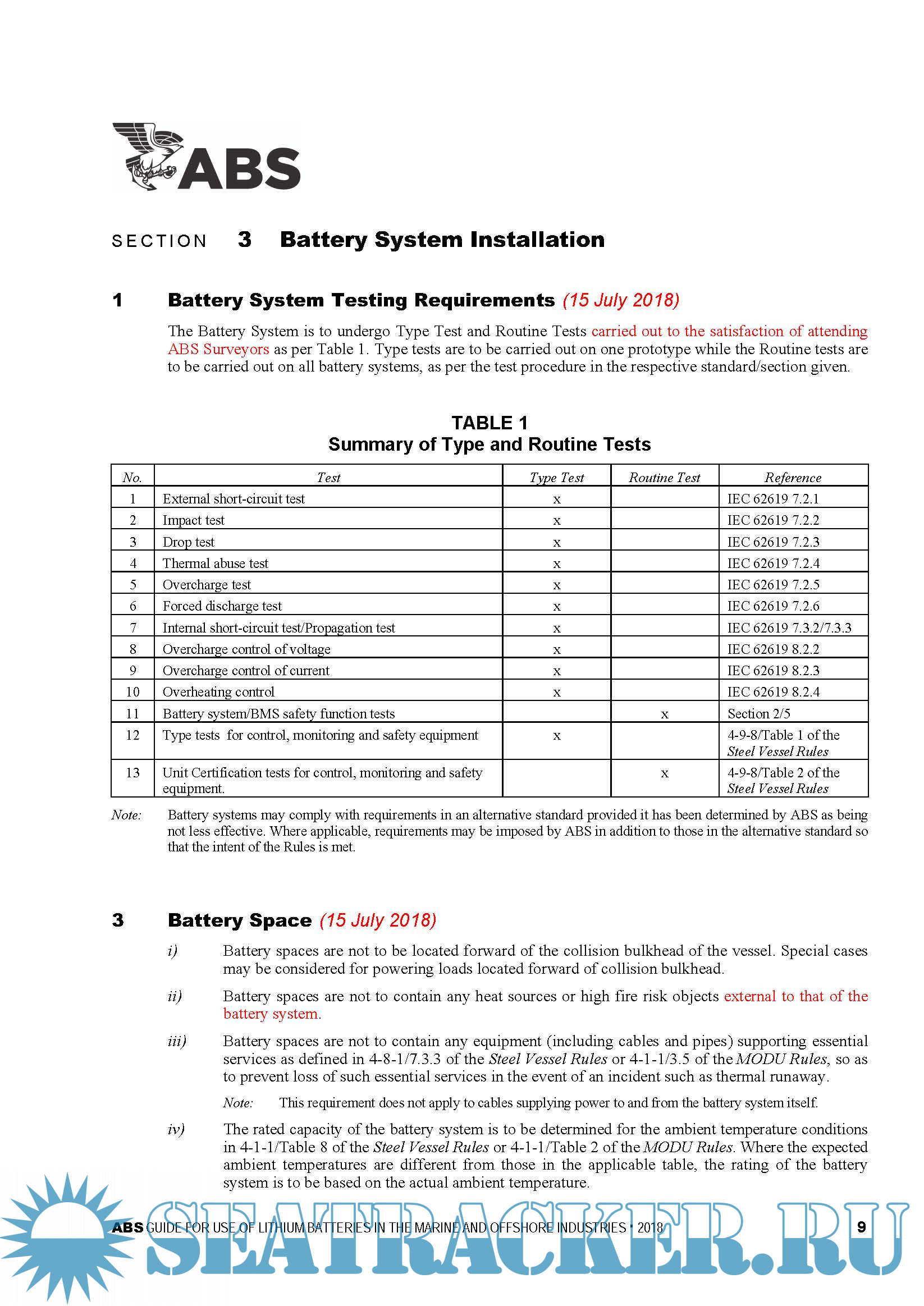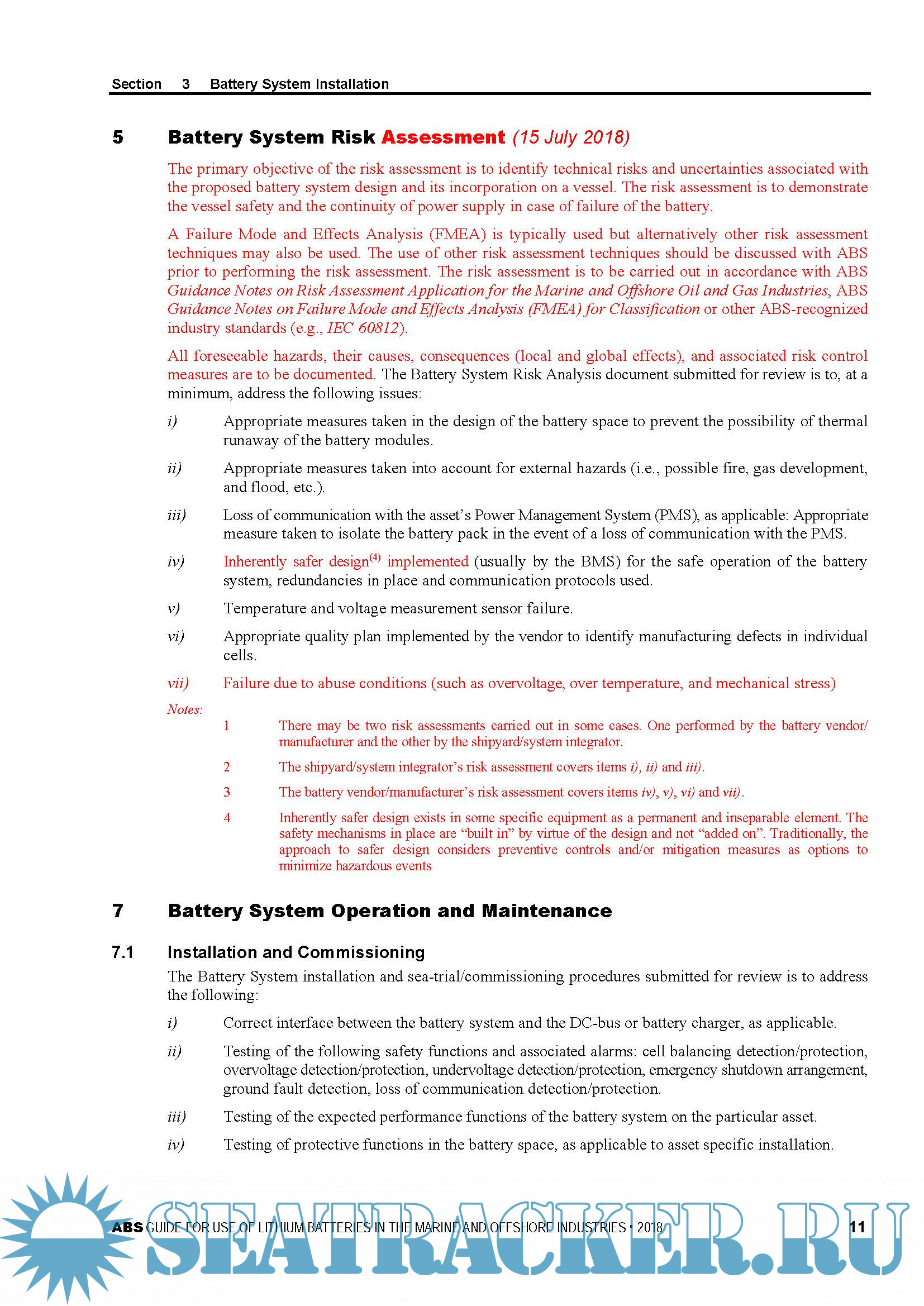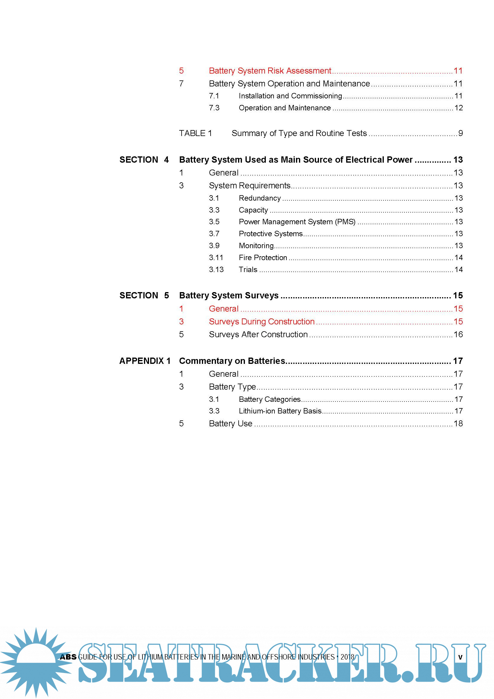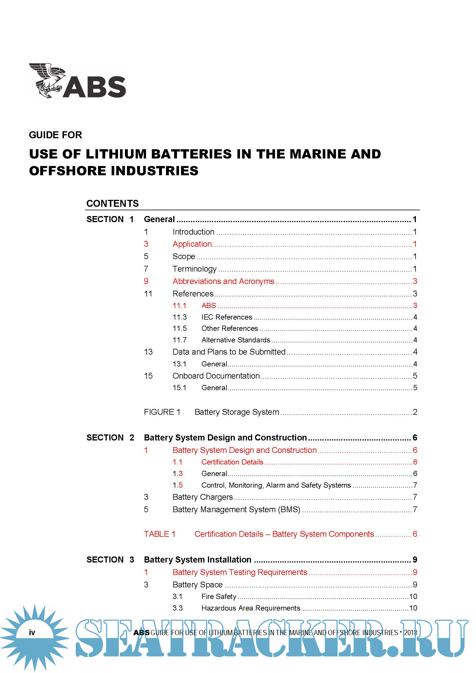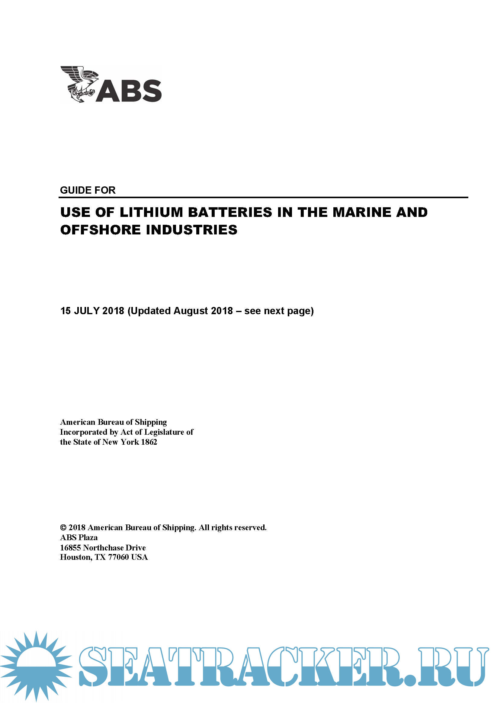 Year: 2018 Language: english Author: ABS Genre: Guide Format: PDF Quality: eBook Pages count: 24 Description: The purpose of this Guide is to establish safety guidelines for owners, operators, shipyards, designers, and manufacturers. The lithium battery types covered by this Guide include lithium-ion, lithium-alloy, lithium metal, and lithium polymer types. Battery technology is continuously evolving with respect to battery chemistries and designs. Alternative arrangements or battery technologies may be considered provided it can be shown, through either satisfactory service experience or a systematic analysis based on sound engineering principles, to meet the overall safety standards of this Guide and the ABS Rules. This Guide becomes effective on 15 July 2018.