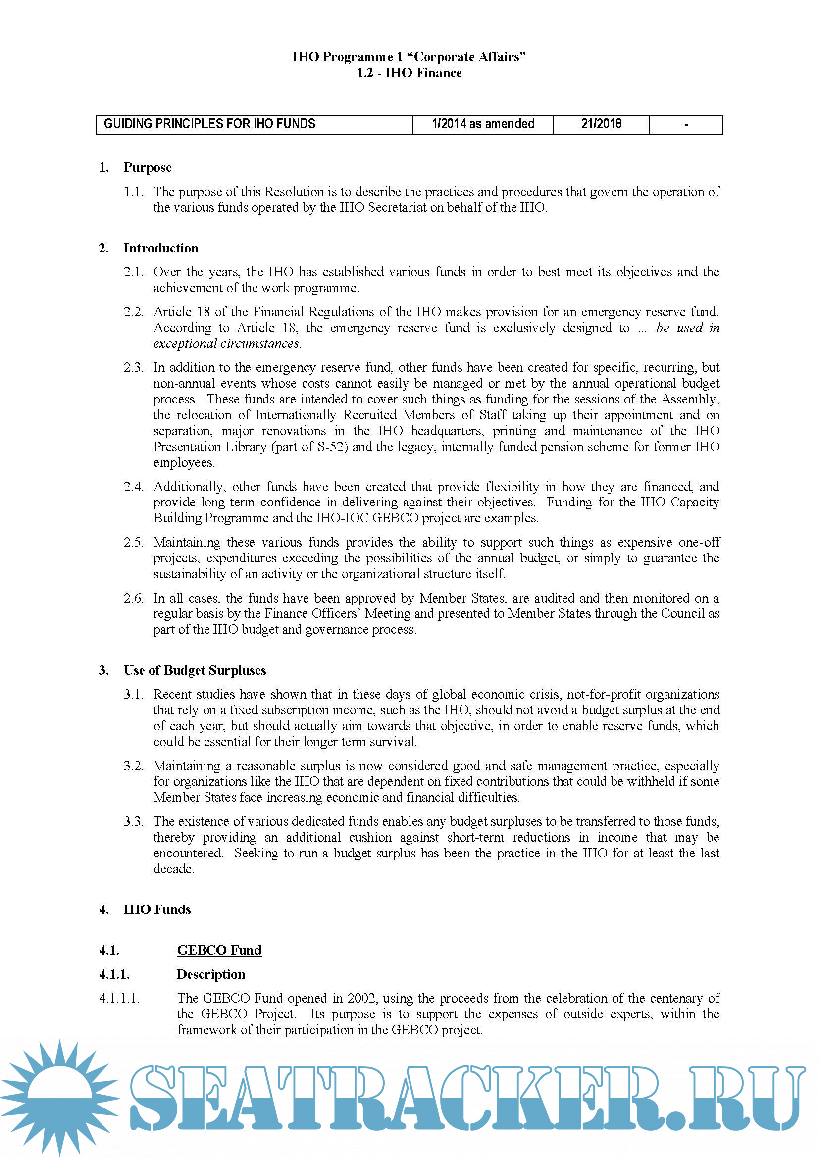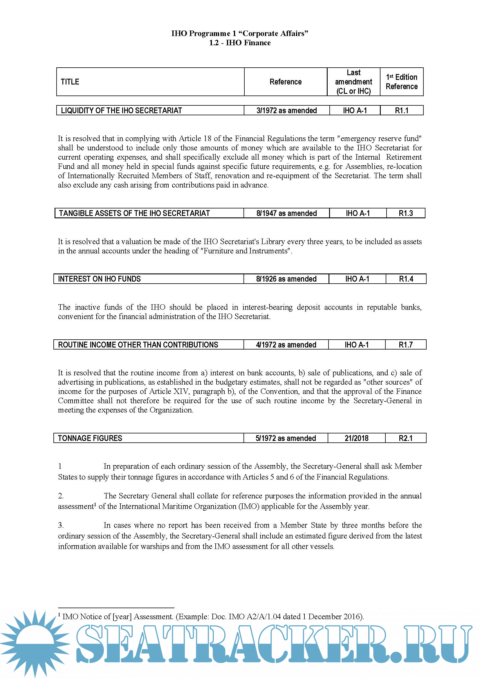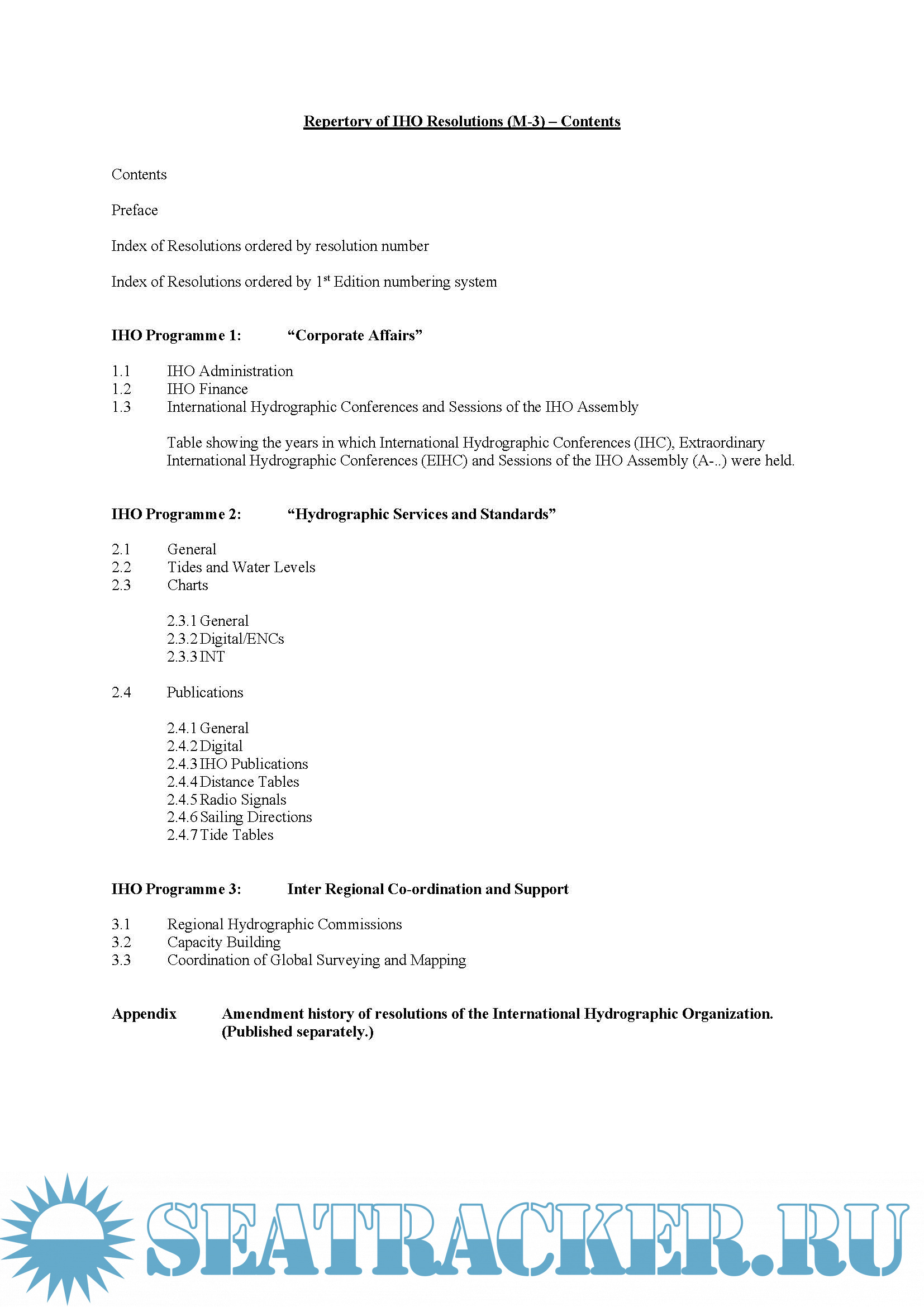 Description: The resolutions of the IHO are collated and published in IHO Miscellaneous Publication M-3. See resolution 13/1932 (Q3.1). M-3 is continuously updated as resolutions are added, amended or deleted.