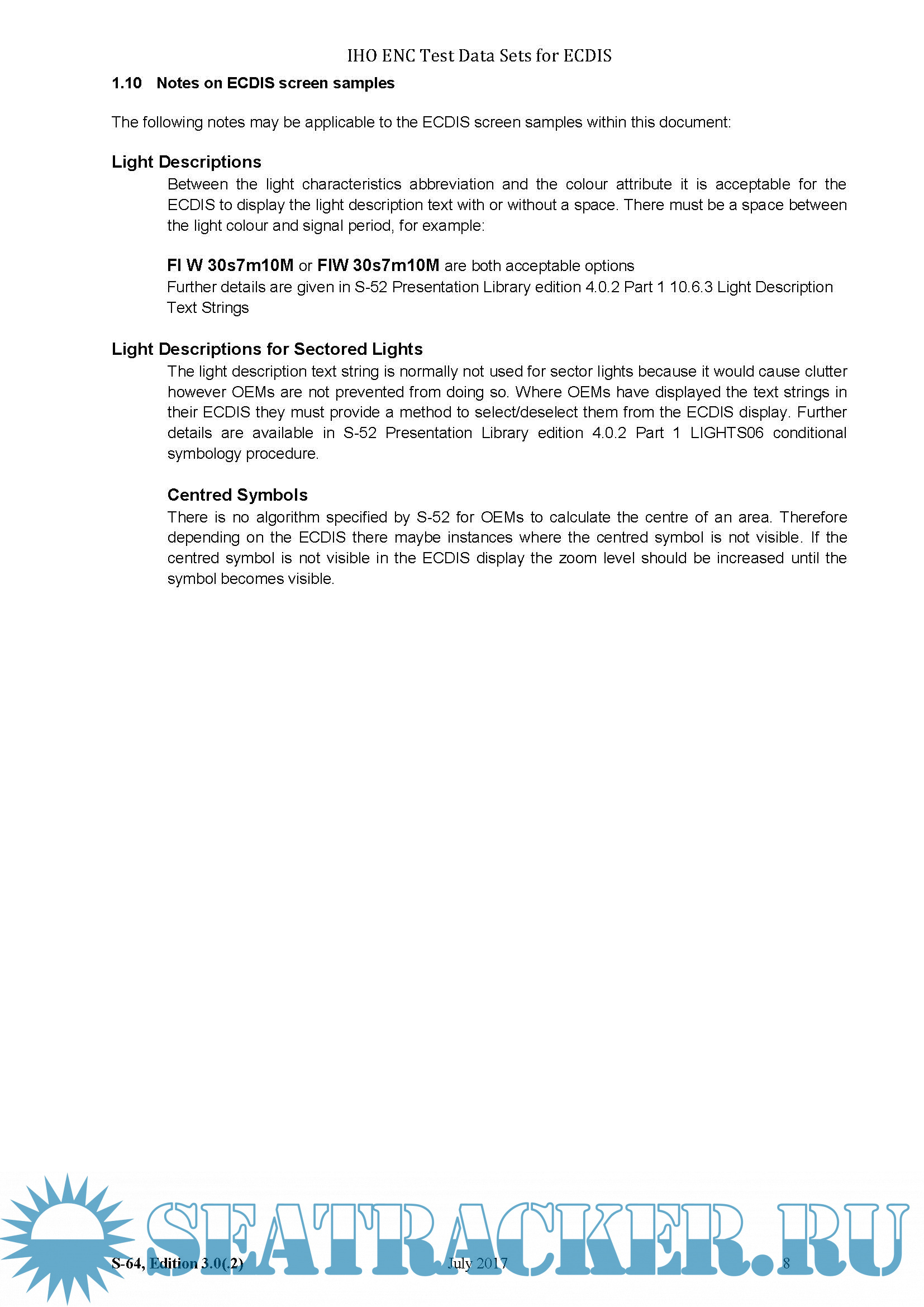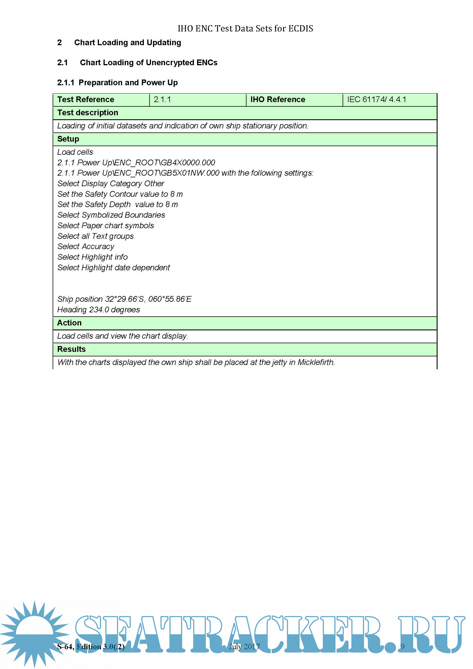 INSTRUCTION MANUAL FOR THE USE OF IHO TEST DATA SETS IN ECDIS _Publication S-64_ IHO TEST DATA SETS IN ECDIS Edition 3.0(.2)