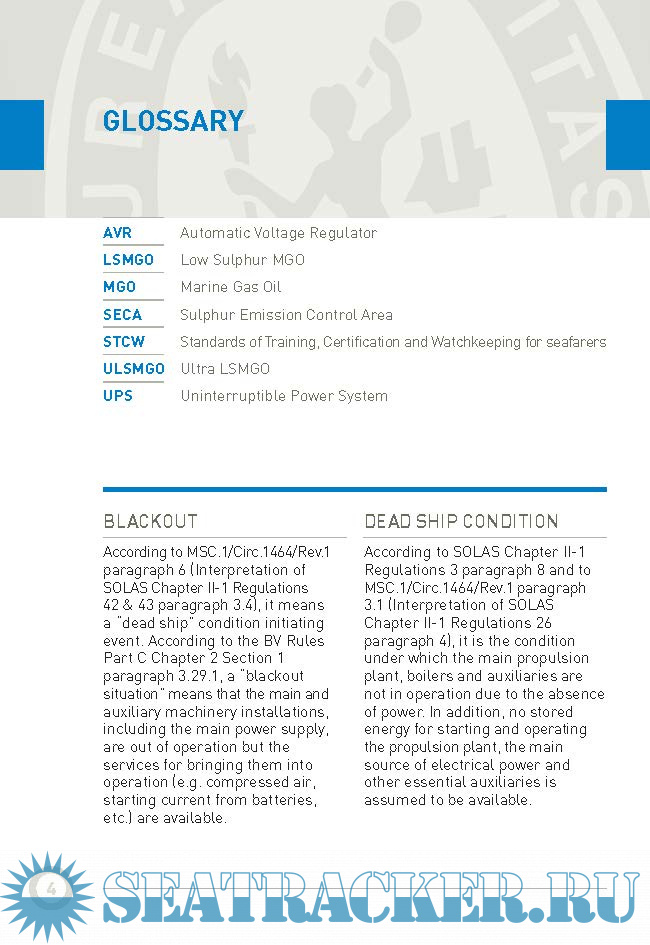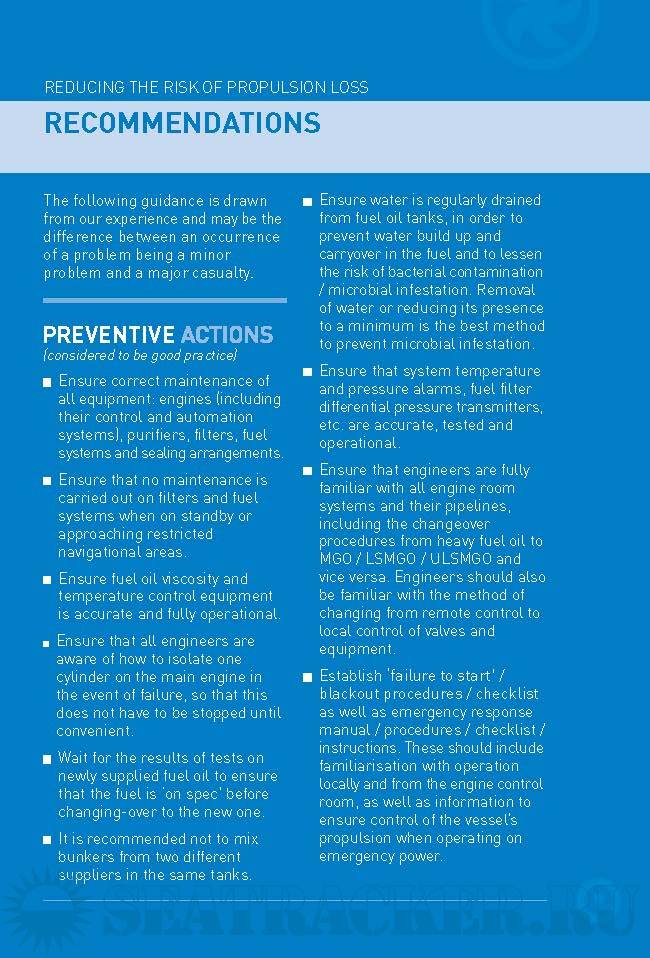 REDUCING THE RISK OF PROPULSION LOSS, Operational guidance for preventing blackouts and main engine failures