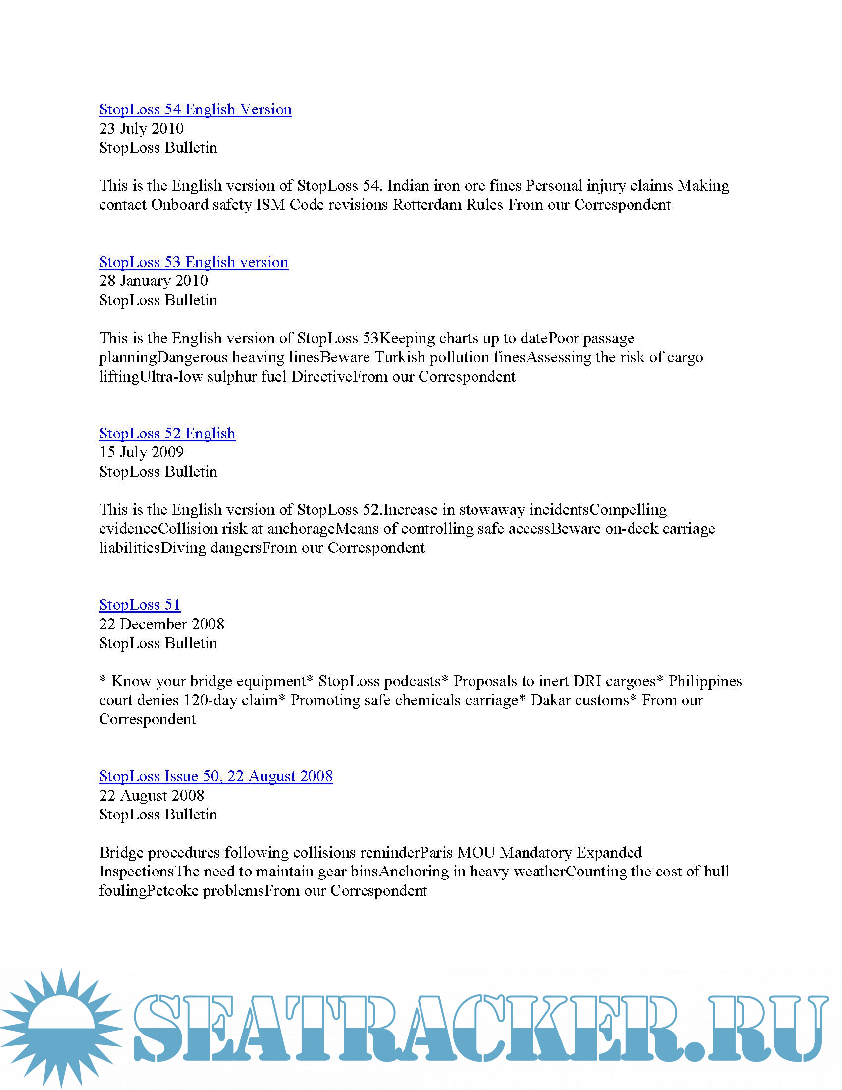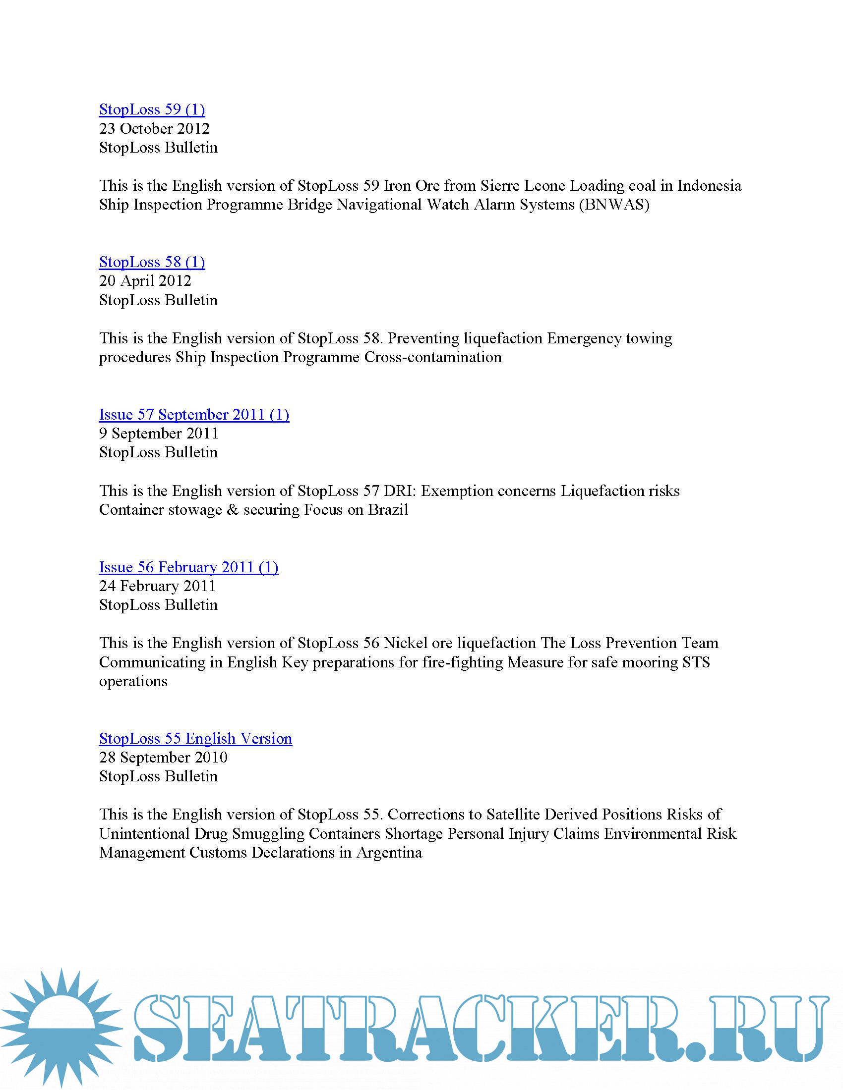 Description: StopLoss Bulletin delivers practical loss prevention advice, drawing from the experience