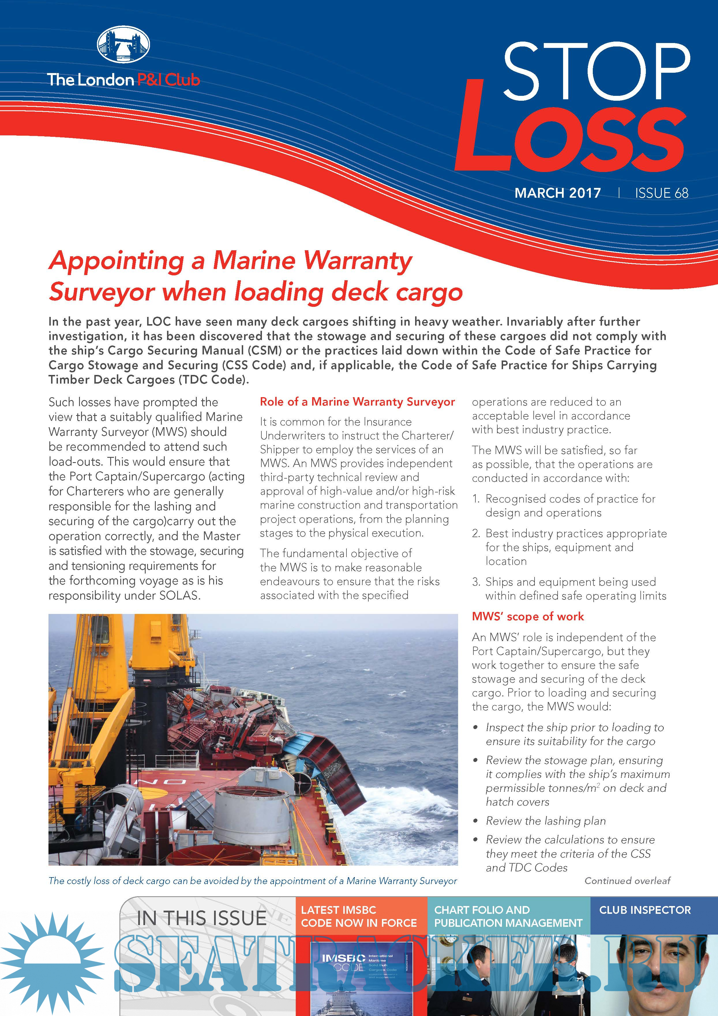 Year: 2018 Language: english Author: The London P&I Club Genre: Collection of books Format: PDF Quality: eBook Pages count: 84 Description: StopLoss Bulletin delivers practical loss prevention advice, drawing from the experience of the Club and our members and from a range of other industry sources.