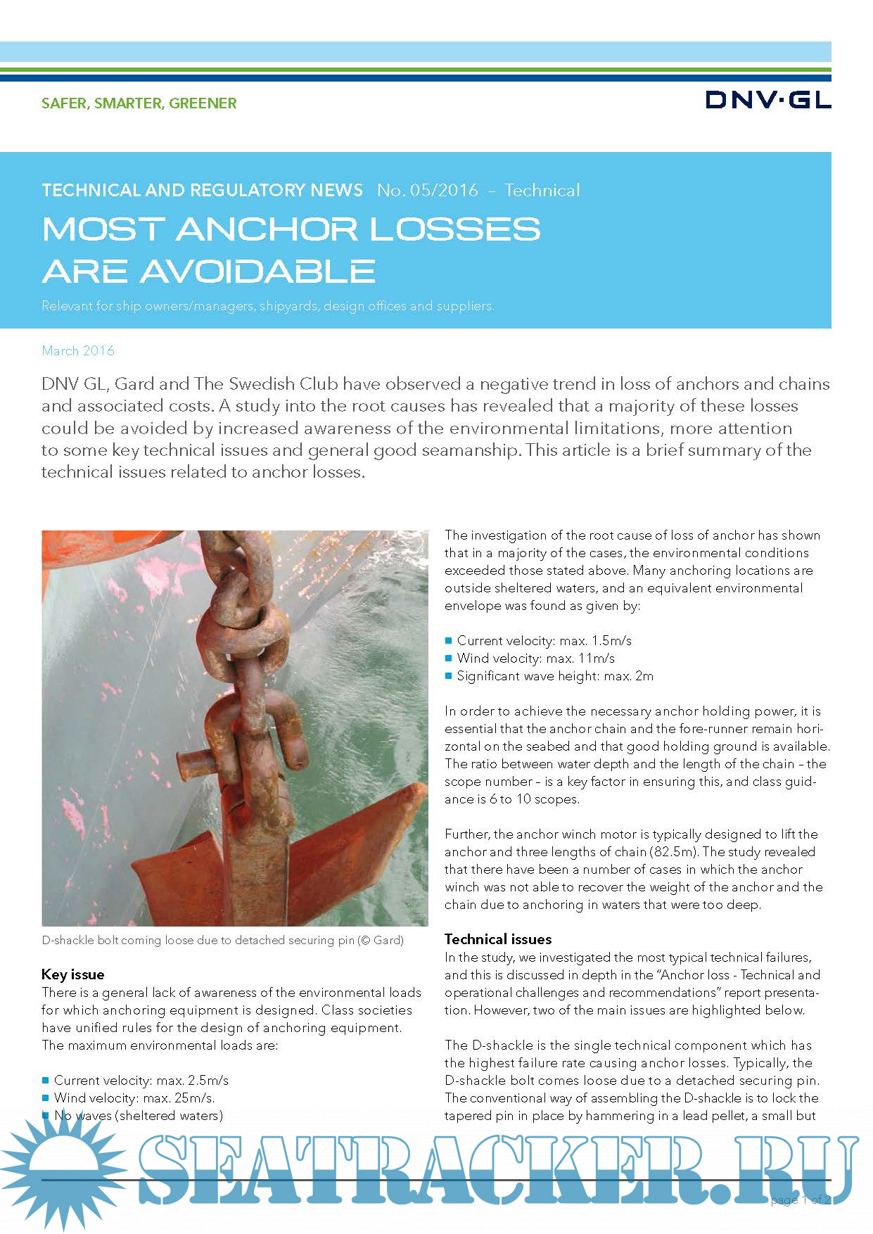 1. DNV TECHNICAL AND REGULATORY NEWS No. 05/2016 - MOST ANCHOR LOSSES ARE AVOIDABLE (2 Pages)