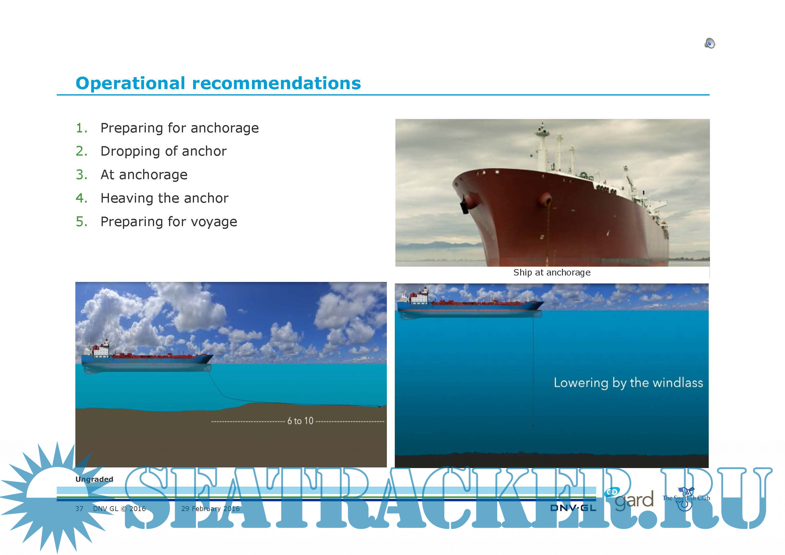 Year: 2016 Language: english Author: DNV GL, Gard and The Swedish Club Genre: Presentation Format: PDF Quality: eBook Pages count: 51 Description: The root cause of many groundings and collisions, lost anchors are among the top five reasons for claims costs. Anchor and chain loss can often lead to collisions and grounding, which can result in additional damage to a vessel. Adding to the costs of anchor loss is the increasingly common requirement from port authorities that lost anchors are recovered. A rising number of anchor losses reported over the last several years prompted DNV GL, Gard and The Swedish Club to investigate this issue. Based on an analysis of damage cases involving anchor and anchor chain losses, the project partners have issued a presentation identifying the most frequent technical and operational causes, and some steps crews and operators can take to address them. This Post consists of 1. DNV TECHNICAL AND REGULATORY NEWS No. 05/2016 - MOST ANCHOR LOSSES ARE AVOIDABLE (2 Pages) 2. Anchor loss - technical and operational challenges and recommendations (49 Pages pdf Presentation)