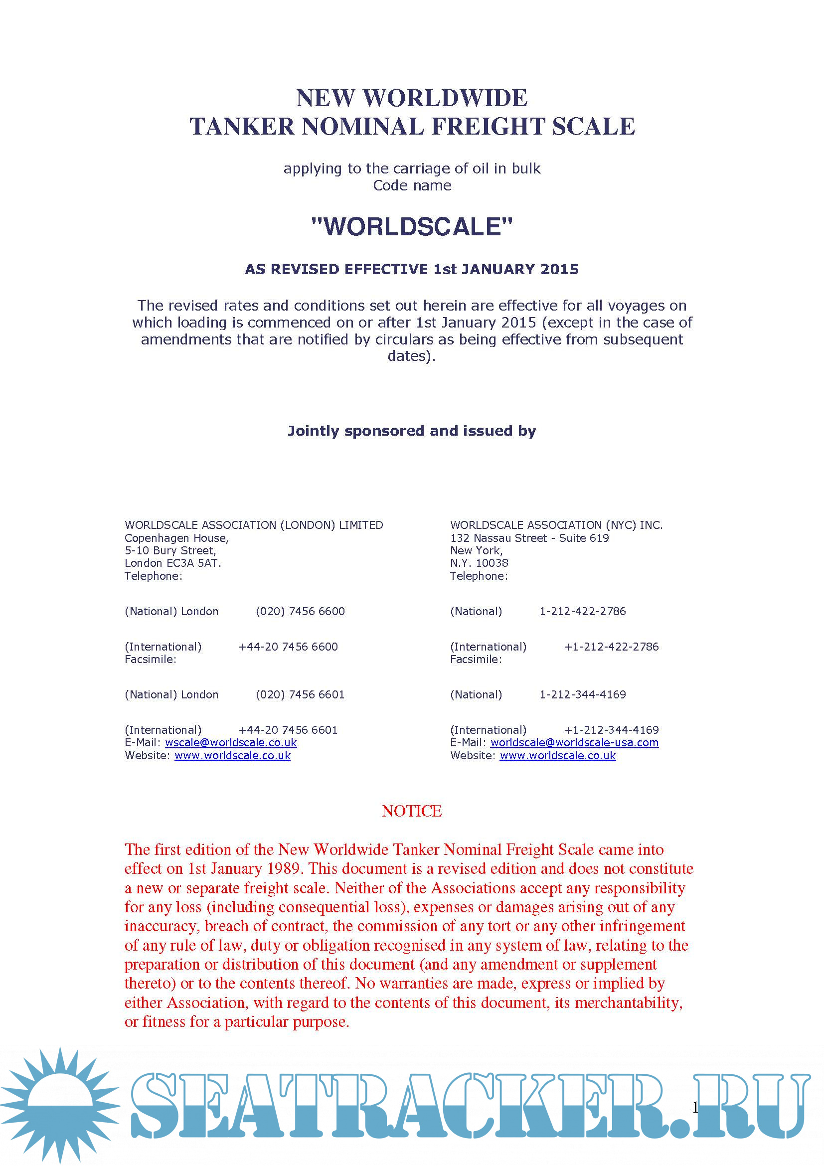 NEW WORLDWIDE TANKER NOMINAL FREIGHT SCALE applying to the carriage of oil in bulk Code name "WORLDSCALE" AS REVISED EFFECTIVE 1st JANUARY 2015
