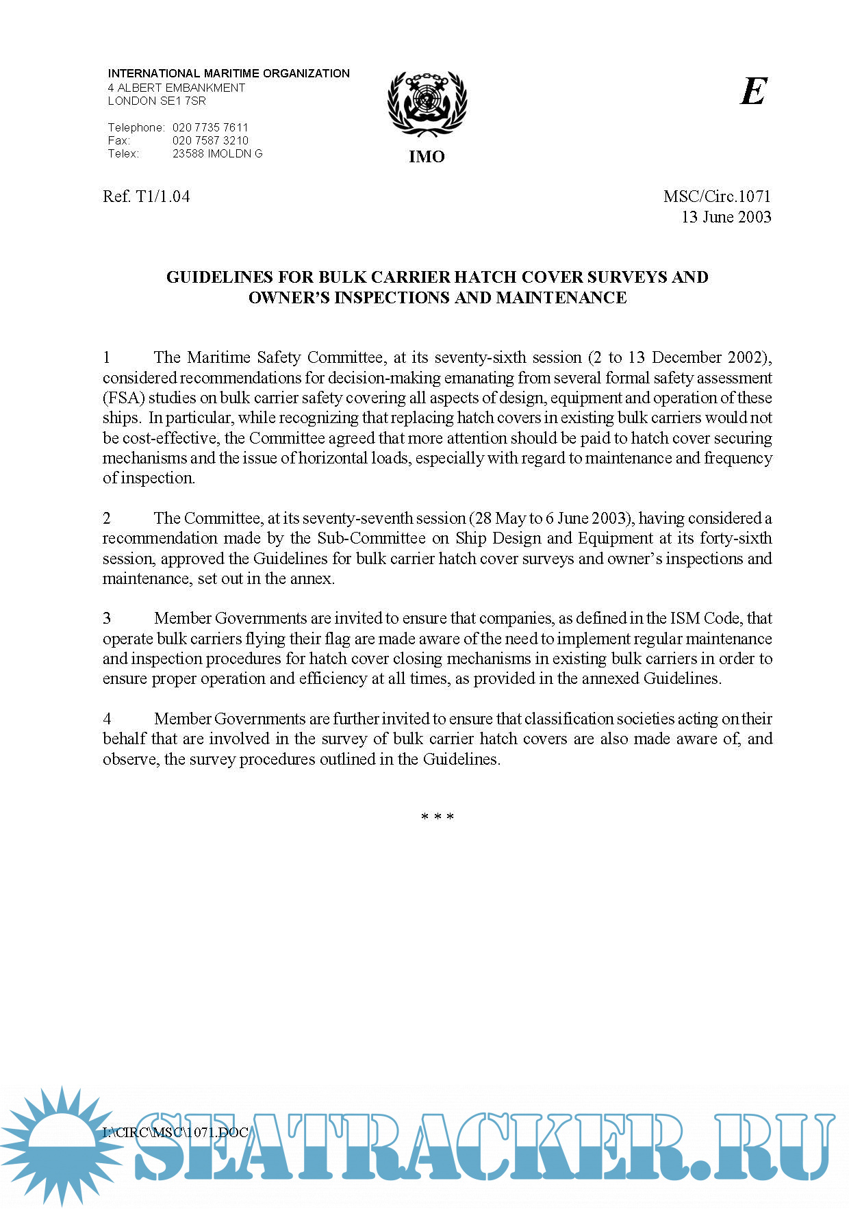 6. IMO - Guidelines For Bulk Carrier Hatch Cover Surveys and Owner's Inspections And Maintenance 2002 (5 Pages)
