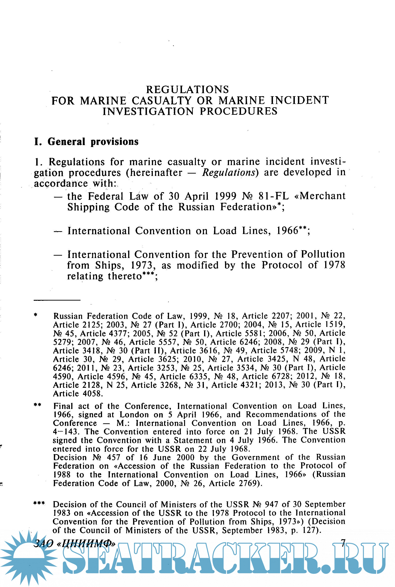 REGULATIONS FOR MARINE CASUALTY OR MARINE INCIDENT INVESTIGATION PROCEDURES (ПРАИМ-2013)