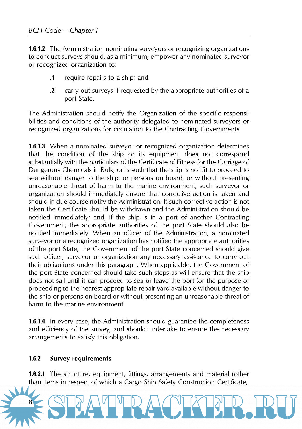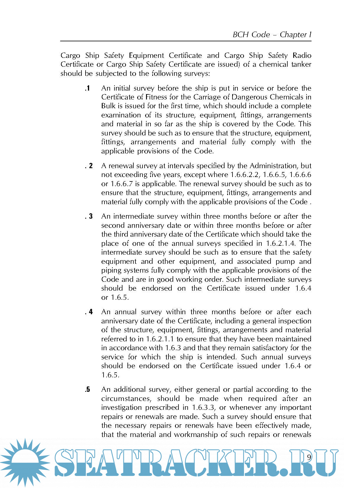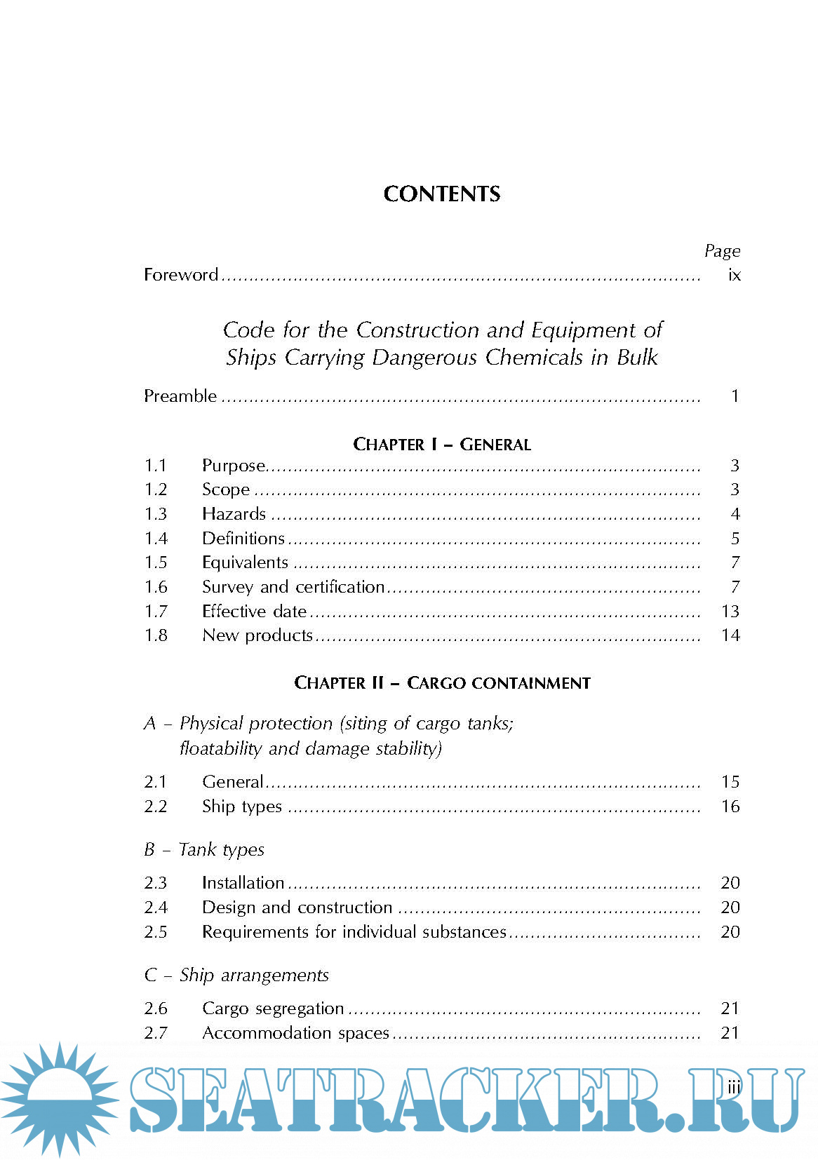Year: 2008 Language: english Author: IMO Genre: Convention (rules) Publisher: CPI Group Edition: Ninth ISBN: 978-92-801-1509-3 Format: PDF Quality: eBook Pages count: 123 Description: This publication contains the Code for the Construction and Equipment of Ships Carrying Dangerous Chemicals in Bulk (BCH Code) and information related to that Code. The Code was originally adopted in 1971 and was altered by a series of amendments between 1972 and 1983 before an amended version was adopted by the Marine Environment Protection Committee (MEPC) in 1985 and by the Maritime Safety Committee (MSC) in 1986. There have been further amendments, the most recent of which were adopted by the MEPC by resolution MEPC.144(54) in March 2006 and by the MSC by resolution MSC.212(81) in May 2006. These came into force on 1 August 2007. This edition also includes amendments which were adopted by the MEPC by resolution MEPC.41(29) which became effective on 3 February 2000; by resolution MEPC.56(33) which became effective on 1 July 1994; by resolu- tion MEPC.70(38) which became effective on 1 July 1998; by resolution MEPC.80(43) which became effective on 1 July 2002 and by resolution MEPC.91(45) which also became effective on 1 July 2002. Chapters VI and VII of the BCH Code are now much shorter than in earlier editions because they refer the user to chapters 17 and 18 of the IBC Code. Under the provisions of Annex II of the International Convention for the Prevention of Pollution from Ships, 1973, as modified by the Protocol of 1978 relating thereto (MARPOL 73/78), chemical tankers constructed before 1 July 1986 must comply with this Code; those built on or after that date must comply with the International Code for the Construction and Equipment of Ships Carrying Dangerous Chemicals in Bulk (IBC Code) for the purposes of MARPOL 73/78 and the International Convention for the Safety of Life at Sea (SOLAS 74).