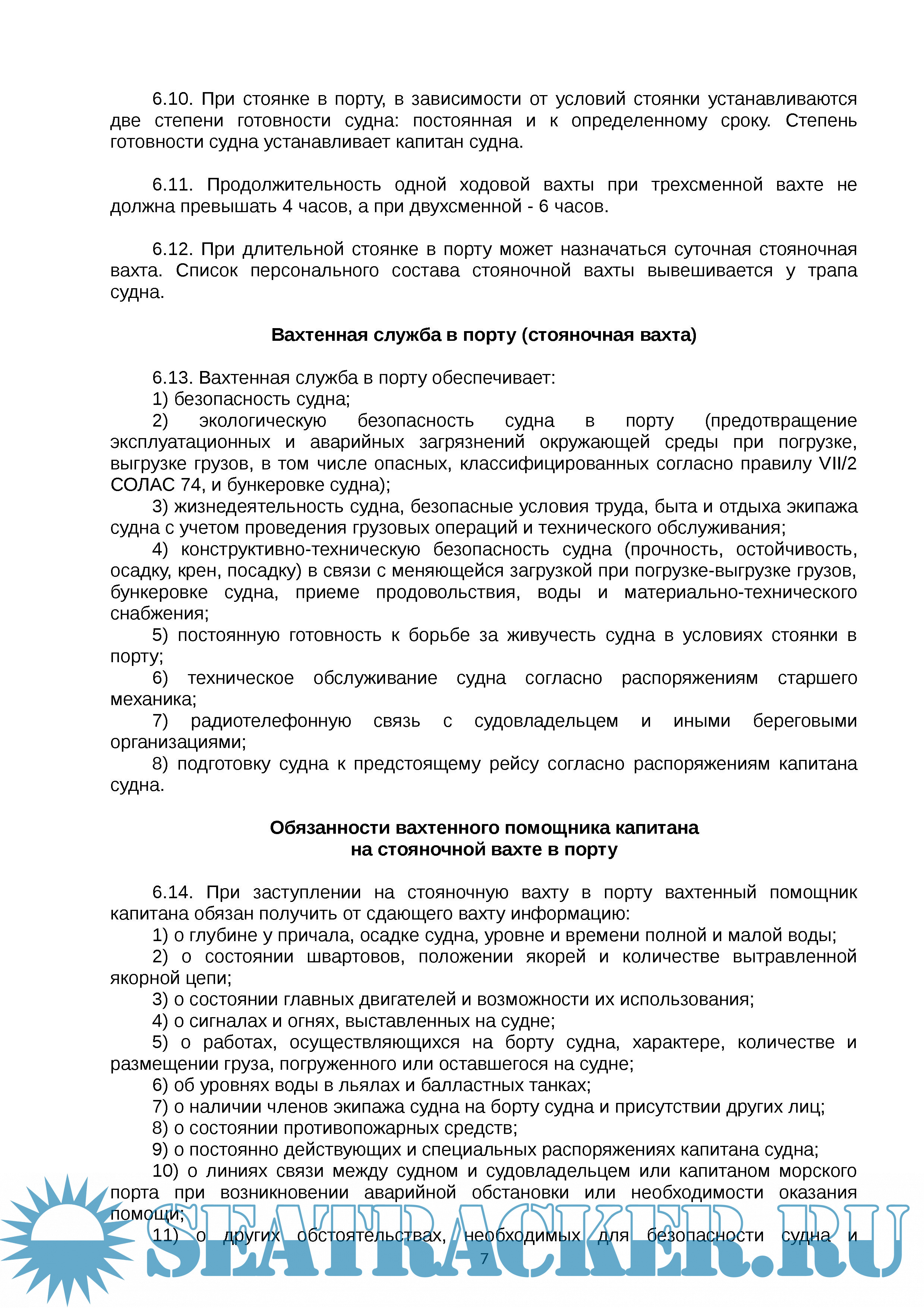 VI. Судовая вахтенная служба