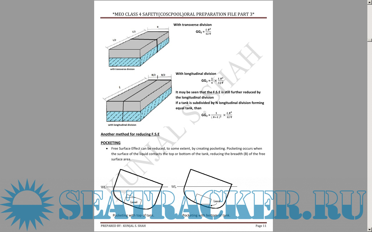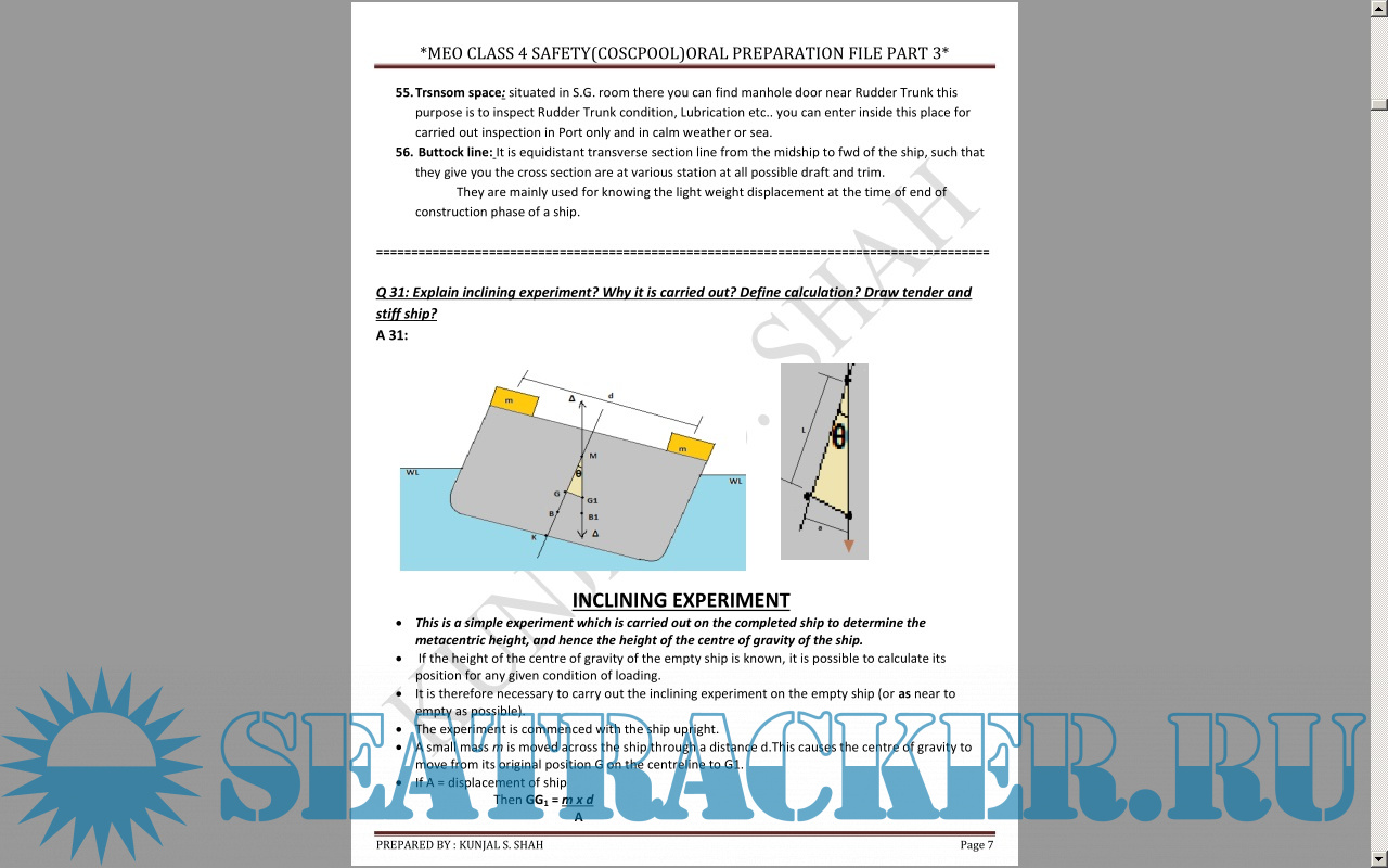 Naval Architecture Paper II: Theory Answers to Exam Questions of MMD India for Chief Mates F.G.…
