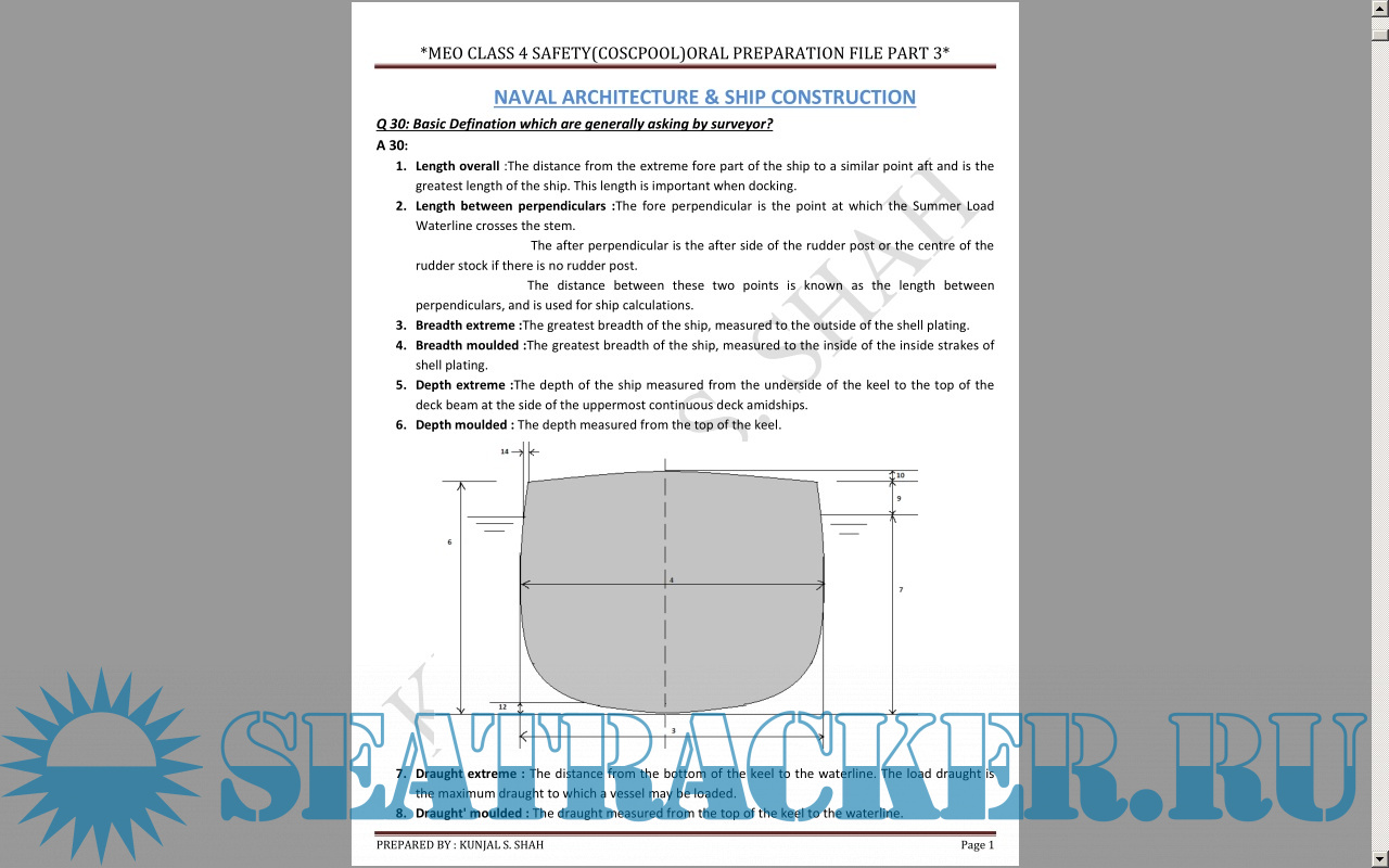 Naval Architecture - I Theory Answers to Exam Questions of MMD India Chief Mates F.G. Phase I -…