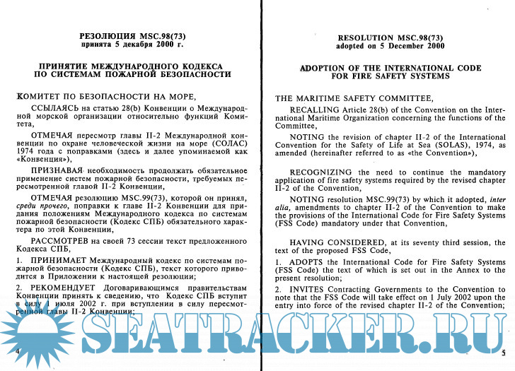 Международный кодекс по системам пожарной безопасности (резолюция MSC.98(73) ИМО).