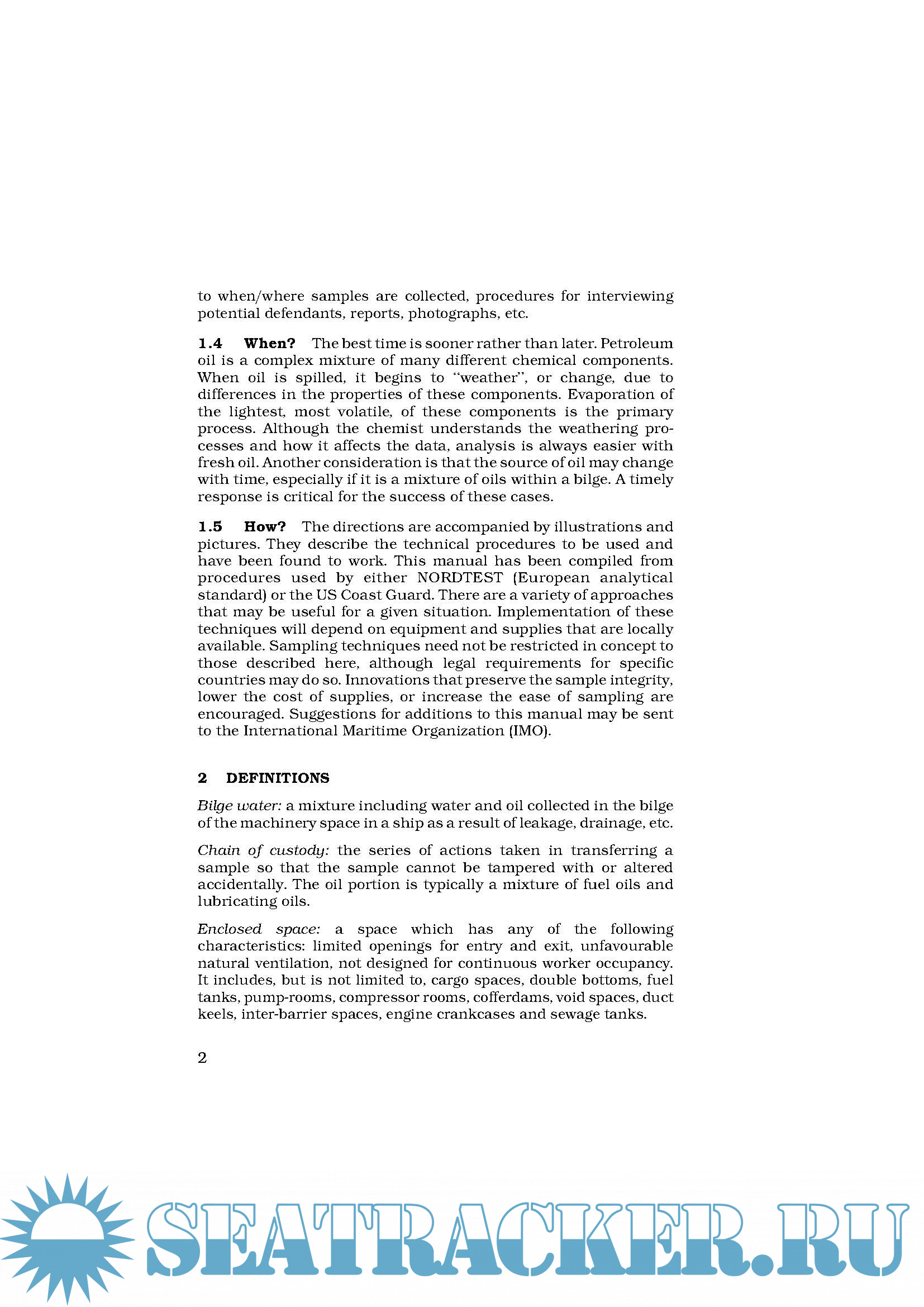 Description: This section provides guidance to Governments on the techniques, including those of developing countries, on the techniques, equipment and strategies for sampling oil to identify unknown sources of spilled oil.