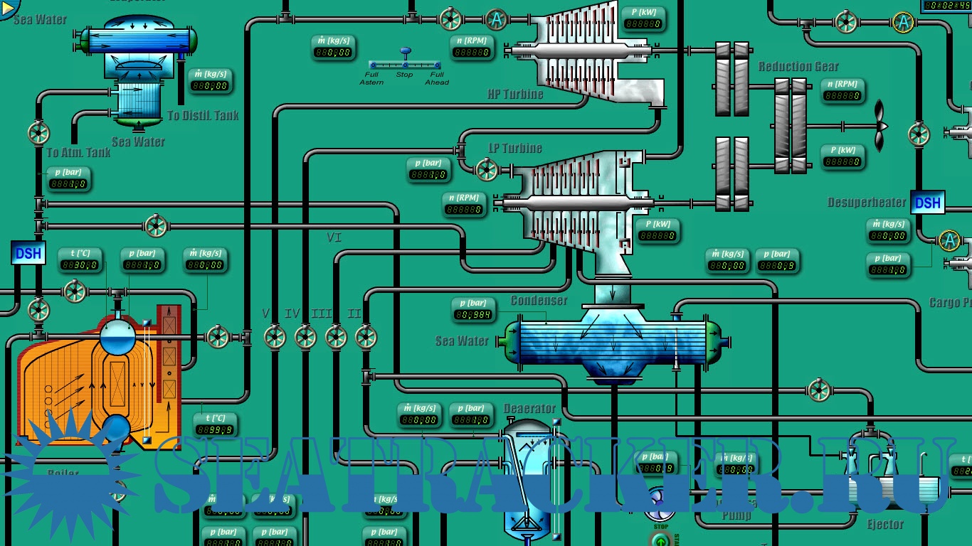 Description: The Steam Engine Room Simulator is designed for oil tanker of the capacity 250.000 - 300.000 DWT.-The nominal work conditions equal