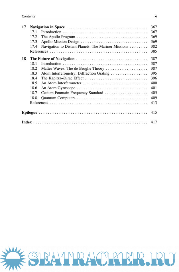 Year: 2014 Language: english Author: F.Major Publisher: Springer ISBN: 978-1-4614-8672-5 Format: PDF Quality: eBook Pages count: 428 Description: Quo Vadis: Evolution of Modern Navigation presents an intelligent and intelligible account of the essential principles underlying the design of satellite navigational systems—with introductory chapters placing them in context with the early development of navigational methods. The material is organized roughly as follows: the first third of the book deals with navigation in the natural world, the early history of navigation, navigating by the stars, precise mechanical chronometers for the determination of longitude at sea, and the development of precise quartz controlled clocks. Then, the reader is introduced to quantum ideas as a lead in to a discussion of microwave and optical interactions with atoms, atomic clocks, laser gyrocompasses, and time based navigation. The final third of the book deals with satellite-based systems, including orbit theory, early satellite navigation systems, and a detailed treatment of the Global Positioning System (GPS). Intended for non-specialists with some knowledge of physics or engineering at the college level, this book covers in an intuitive manner a broad range of topics relevant to the evolution of surface and space navigation, with minimum mathematical formalism.
