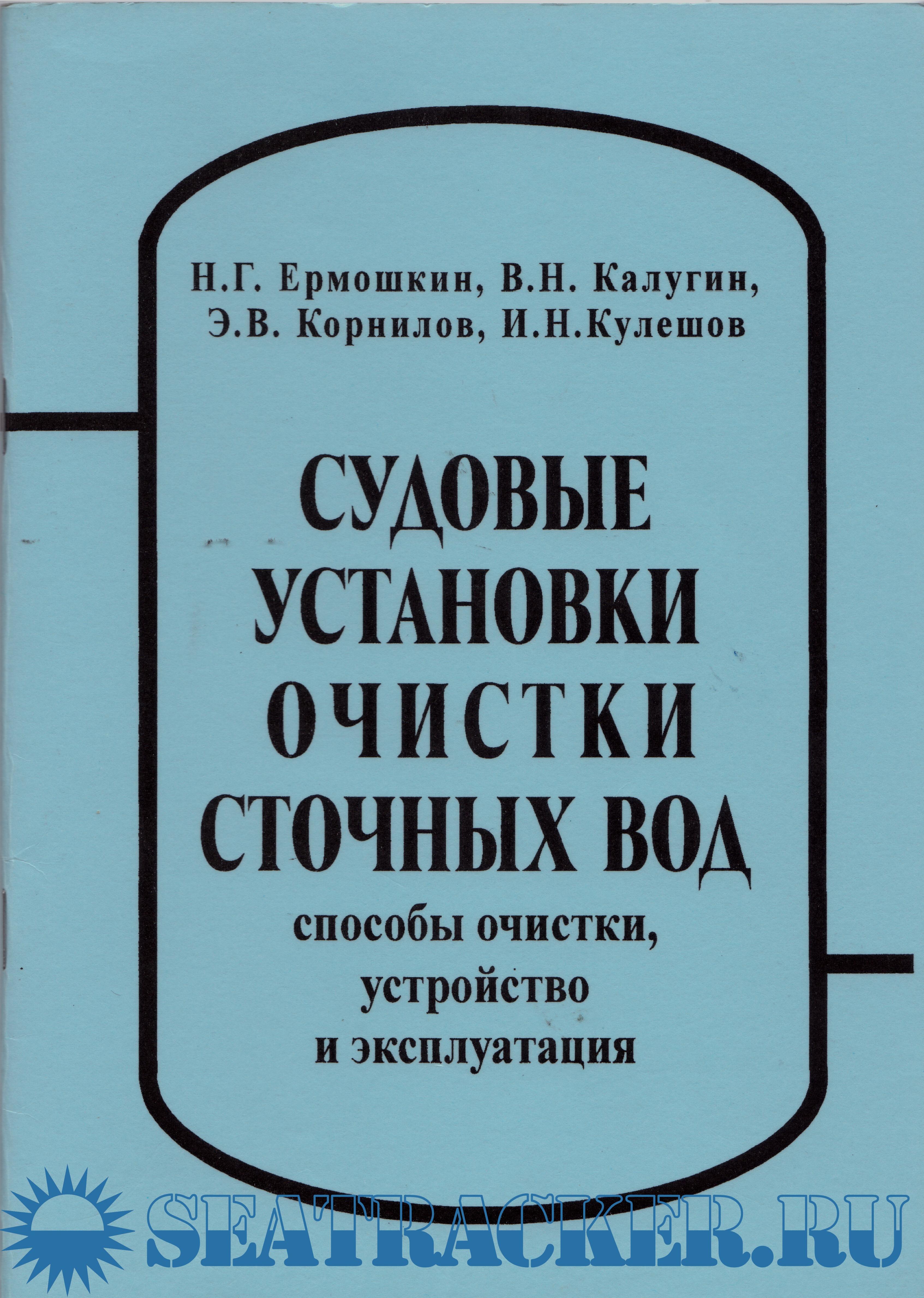 Ермошкин Н.Г., Калугин В.Н., Корнилов Э.В., Кулешов И.Н. С 892 Судовые установки очистки сточных вод: способы и схемы очистки, устройство и эксплуатация: Учебн пособ. / Под общ. ред. Пипченко А.Н. - Одесса: ФЕНIКС - 56 с. ISBN 966-8289-46-3