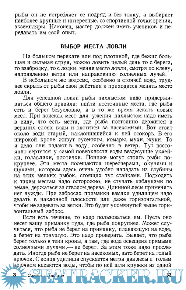 Описание: Нахлыст — это ужение на насекомых поверху. Берут: голавль, шереспёр, язь, плотва, краснопёрка, елец, чехонь, уклейка. В северных и южных широтах ловятся лосось, кумжа, форель, хариус и многие другие породы рыб, в том числе и некоторые морские. Нахлыст — подвижной и активный способ ужения. С ним не ждут рыбу, а ищут её. Рыболова с нахлыстом можно встретить и на берегу горной речки, и у водопада под плотиной, и на берегу широкой равнинной реки, и на просторах наших пресных морей, и около старого сельского пруда. Ловят с первых весенних дней до осенних холодов, ловят по зорям, в сумерки, а иногда и ночью. Ловят с берега, плотин, мостов, с лодки и взабродку. В этой книге будут описаны нахлыстовая снасть в некоторых наиболее её типичных вариантах, начиная с самых простых, а также приёмы и обстановка ловли.