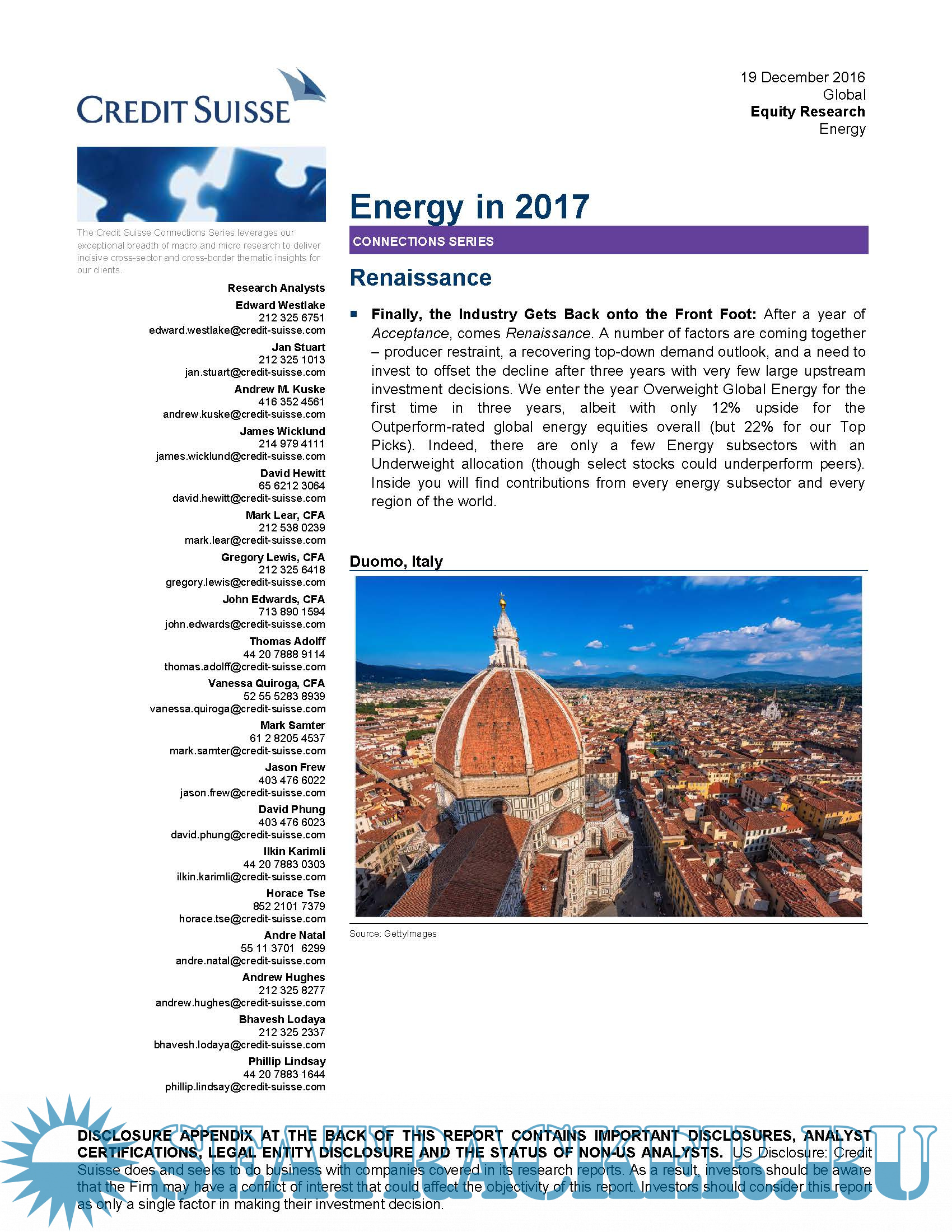 5. Energy in 2017 - CreditSuisse (2016) Research 255 Pages